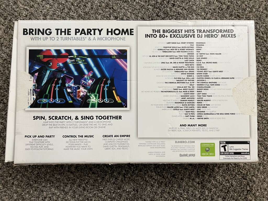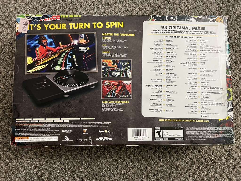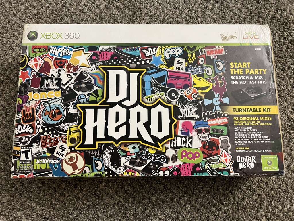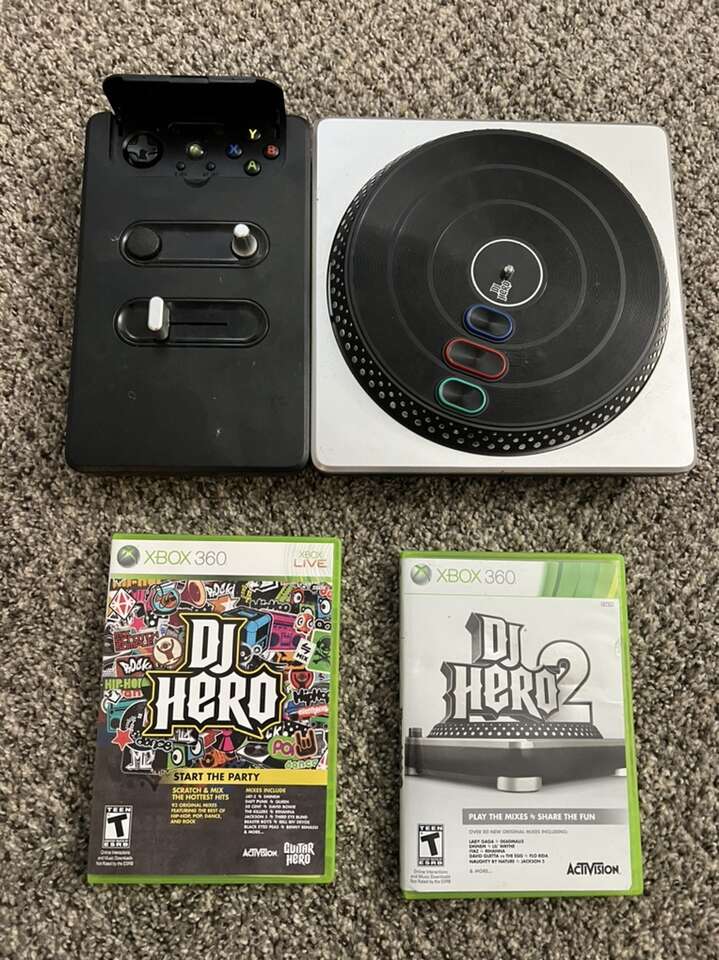 I have like-new and barely used DJ Hero sets, for Xbox 360, Wii, and PlayStation 3. I have both DJ Hero Games, even the special edition Renegade Edition, still in the box, for 360. Comes with stand as well.