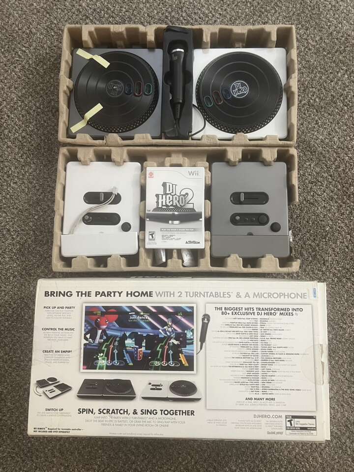 Dj hero out of box is $80 In original box with game $120 Dj hero 2(comes with two turntables) and is like-new in box is $200 Extra games are: dj hero 1 $20 Dj hero 2 $30