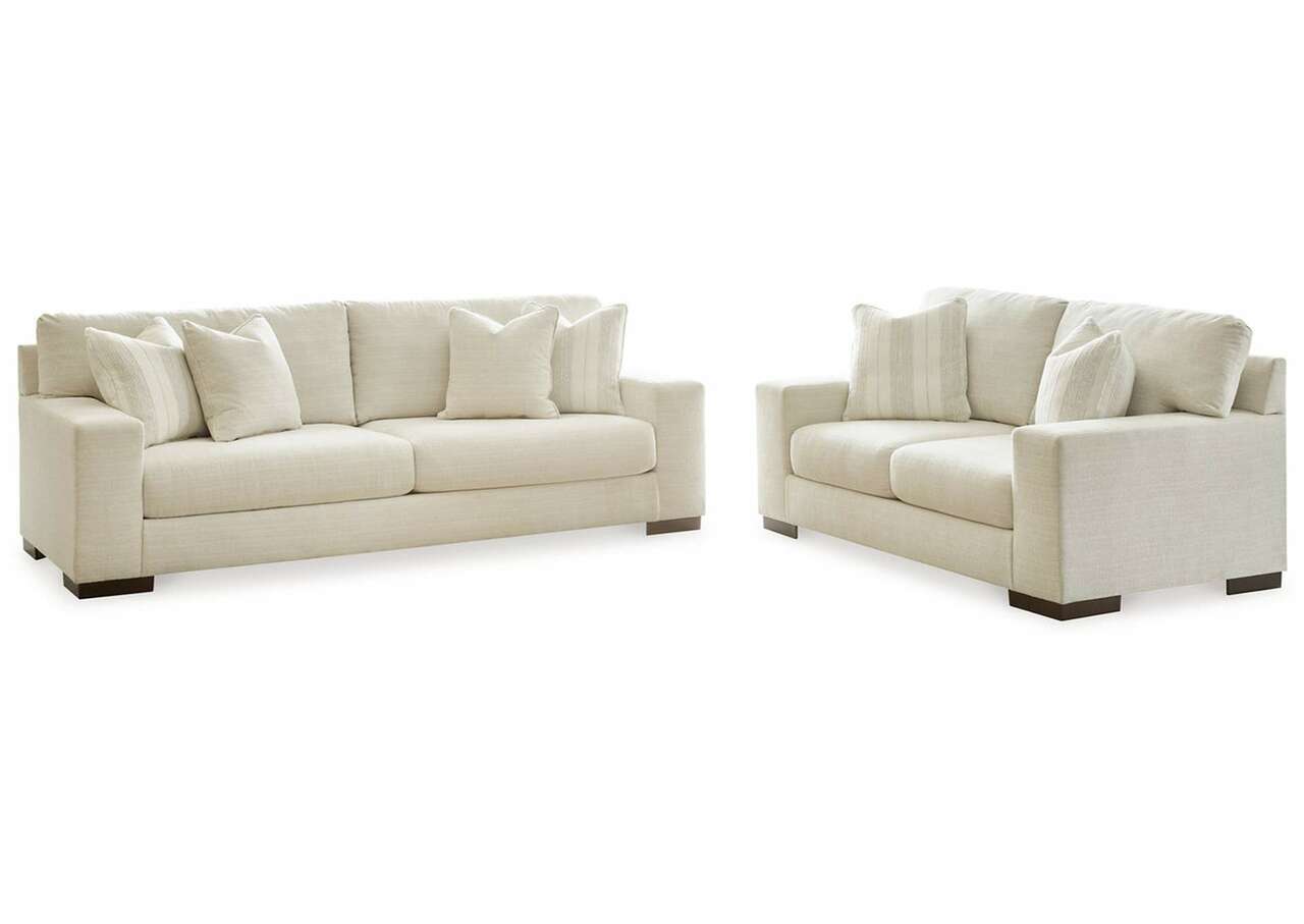 Classic comfort gets a mod twist with this sofa and loveseat package. Its minimalistic approach and structured silhouette bring a clean-lined design element to your living room. Sink into the positively plush cushions while relaxing solo, or curl up with a glass of wine while hosting guests. And with light neutral upholstery that suits both casual and contemporary spaces, this set offers endless style possibilities.Includes sofa and loveseat