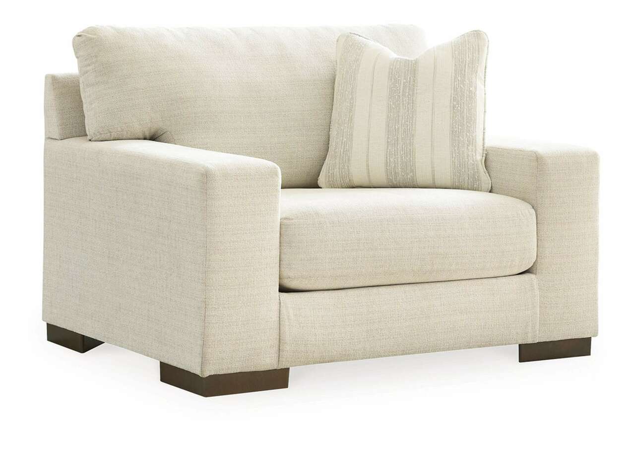 Classic comfort gets a mod twist with the Maggie oversized chair. Its minimalistic approach and structured silhouette bring a clean-lined design element to your living room. Sink into the positively plush cushions while relaxing solo, or curl up with a glass of wine while hosting guests. And with light neutral upholstery that suits both casual and contemporary spaces, this chair offers endless style possibilities.Corner-blocked frame