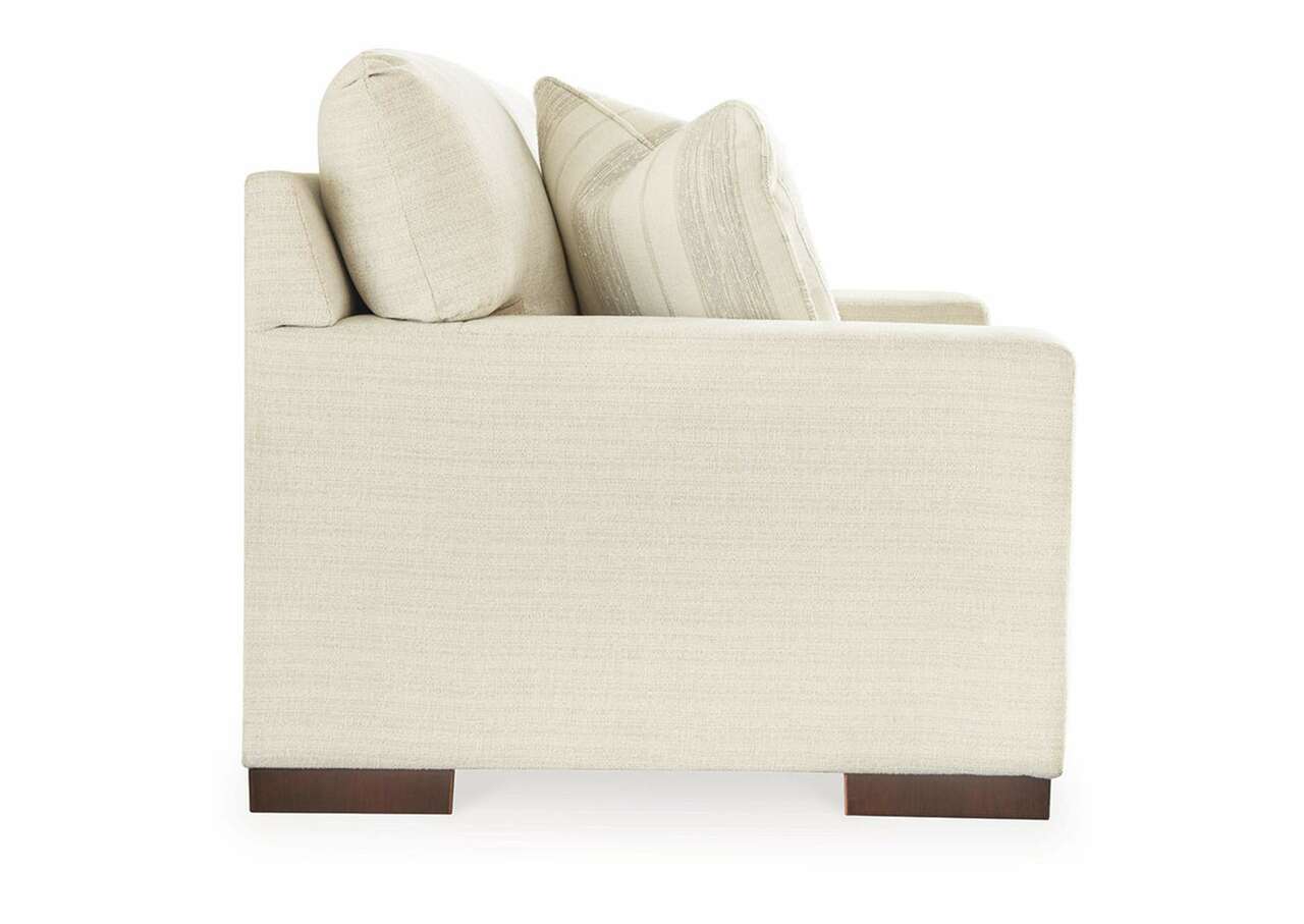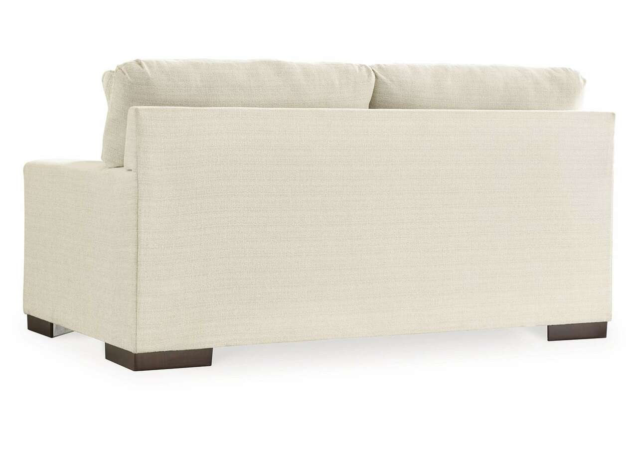 Classic comfort gets a mod twist with the Maggie loveseat. Its minimalistic approach and structured silhouette bring a clean-lined design element to your living room. Sink into the positively plush cushions while relaxing solo, or curl up with a glass of wine while hosting guests. And with light neutral upholstery that suits both casual and contemporary spaces, this loveseat offers endless style possibilities.Corner-blocked frame