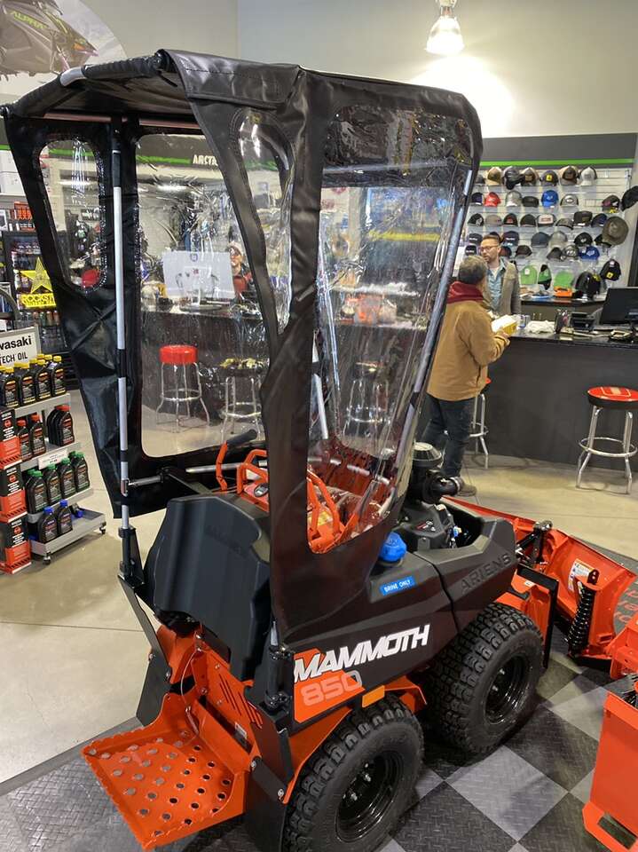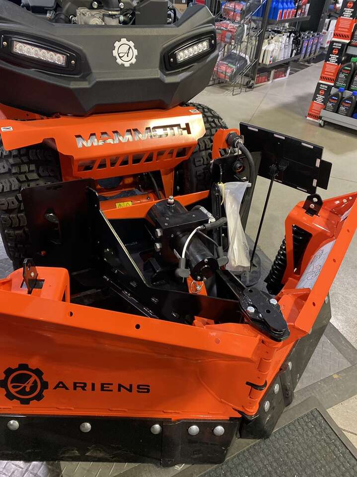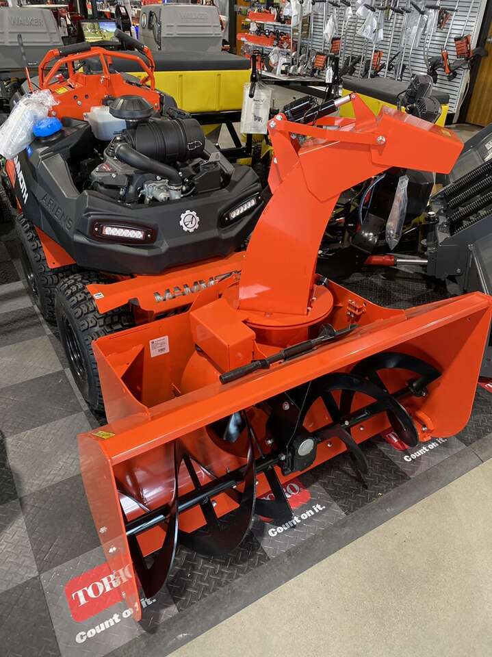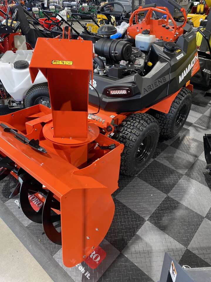 We have the Ariens stand on Mammoth tractor in stock. This tractor has a PTO system allowing you to attatch different accessories for snow removal. Snow removal options include Straight plow blade, V Blade, 36 snowblower, 48 snowblower, and bristle broom attatchment.