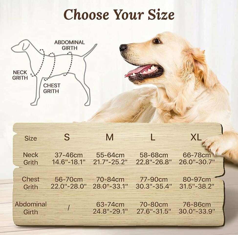 Size: Large. See photos for information on how to determine the size of your dog and if this vest will fit.