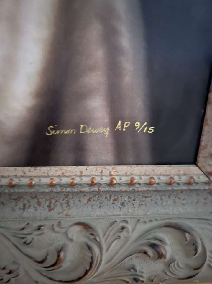 Framed Simon Dewey Painting. The outer dimensions of the frame are 40” wide x 30” tall.