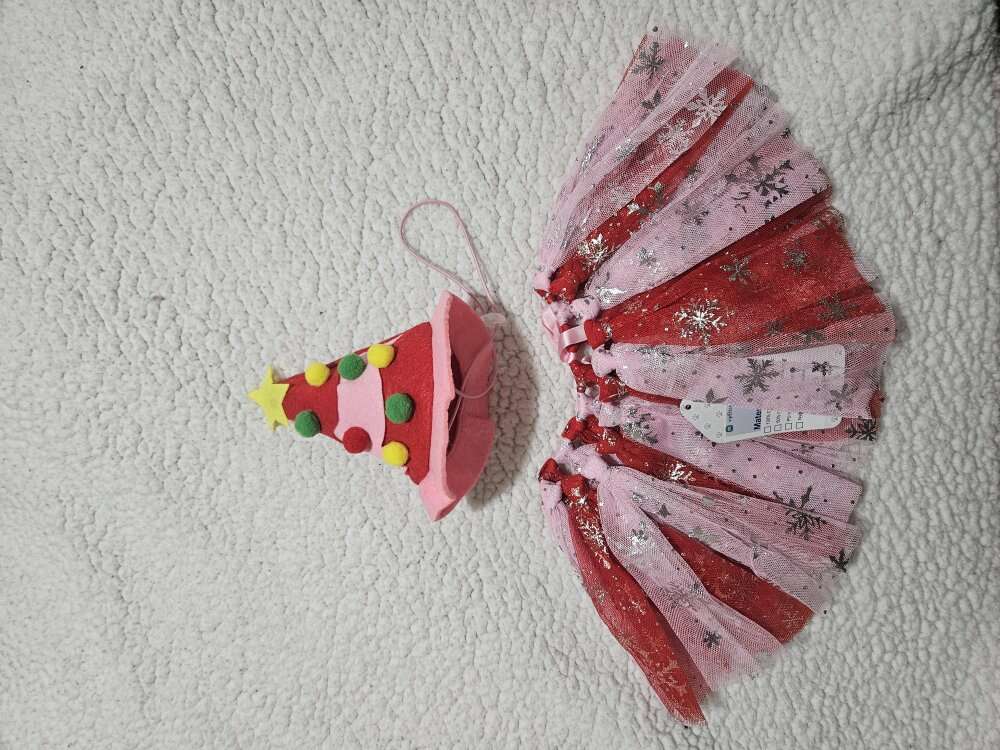 This Christmas out is new with tags. It will fit a dog size small probably upto a large. Please check the measurements in the pictures to make sure it will fit your little one. The ribbon around the weights is adjustable or you can take some off if needed. And the hat has the adjustable drawstring. All my items come from a smoke free home. Any questions please feel free to contact me.