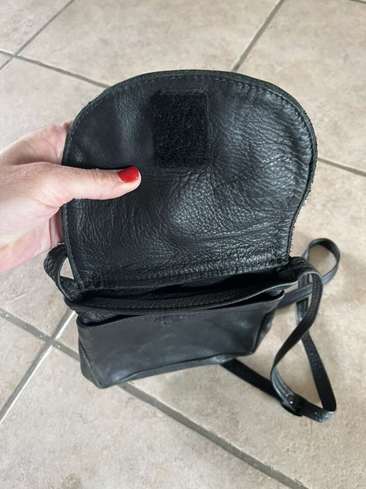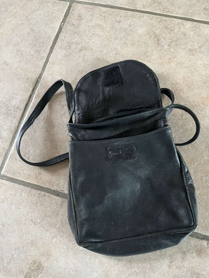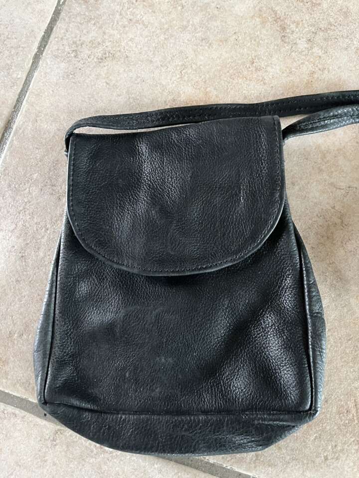 Black/gray leather satchel 9T x 7 1/2 strap 22” no brand