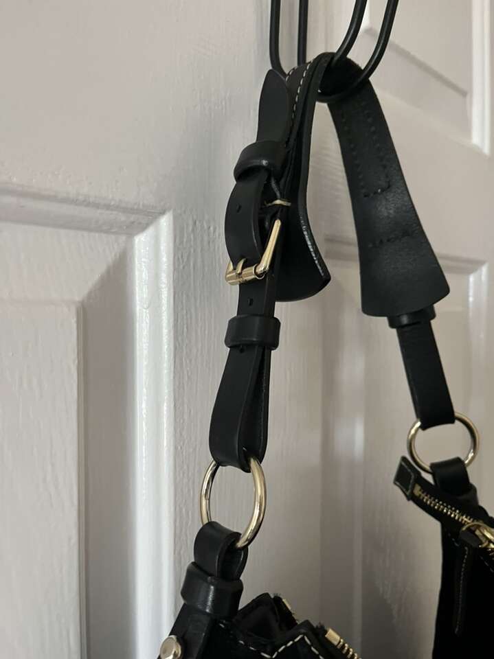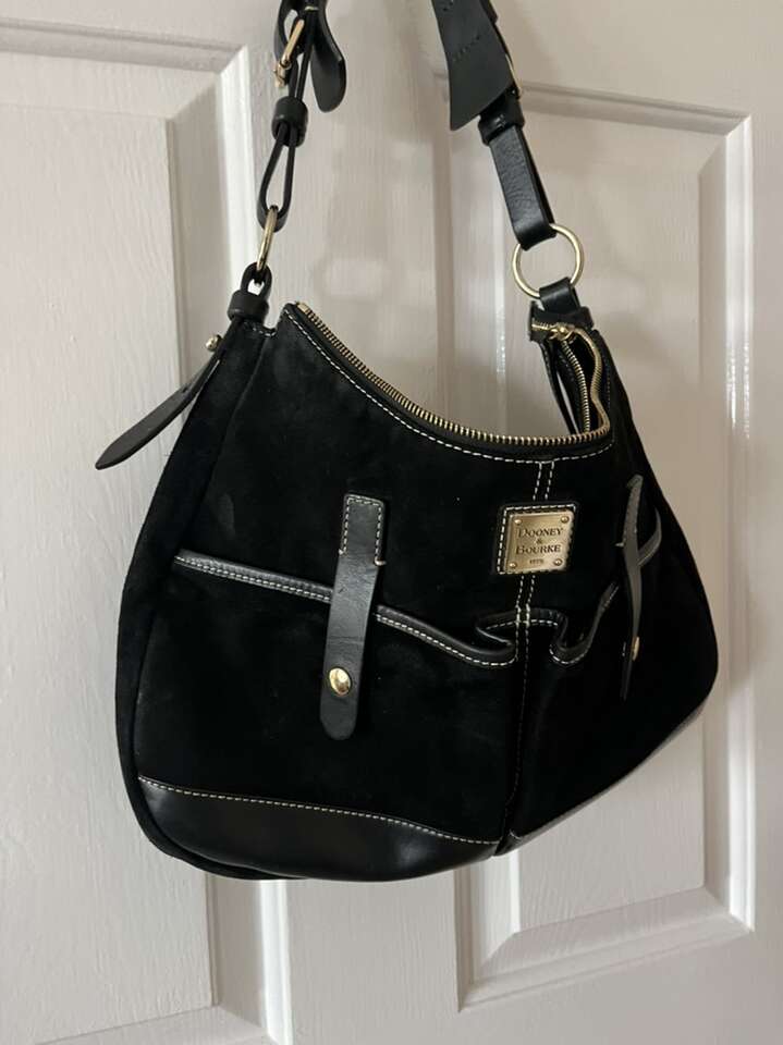 Dooney & Bourke black leather purse 15W X 11T strap 9 tall needs a cleaning