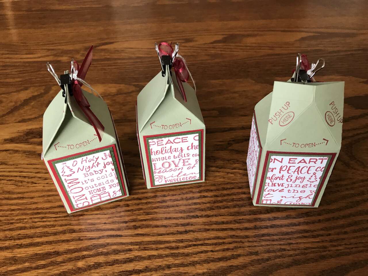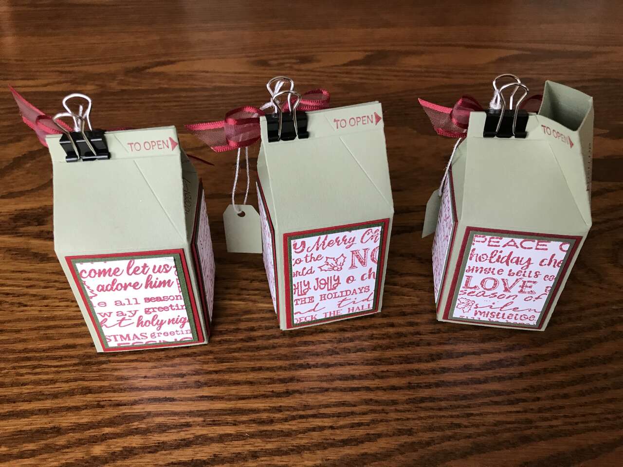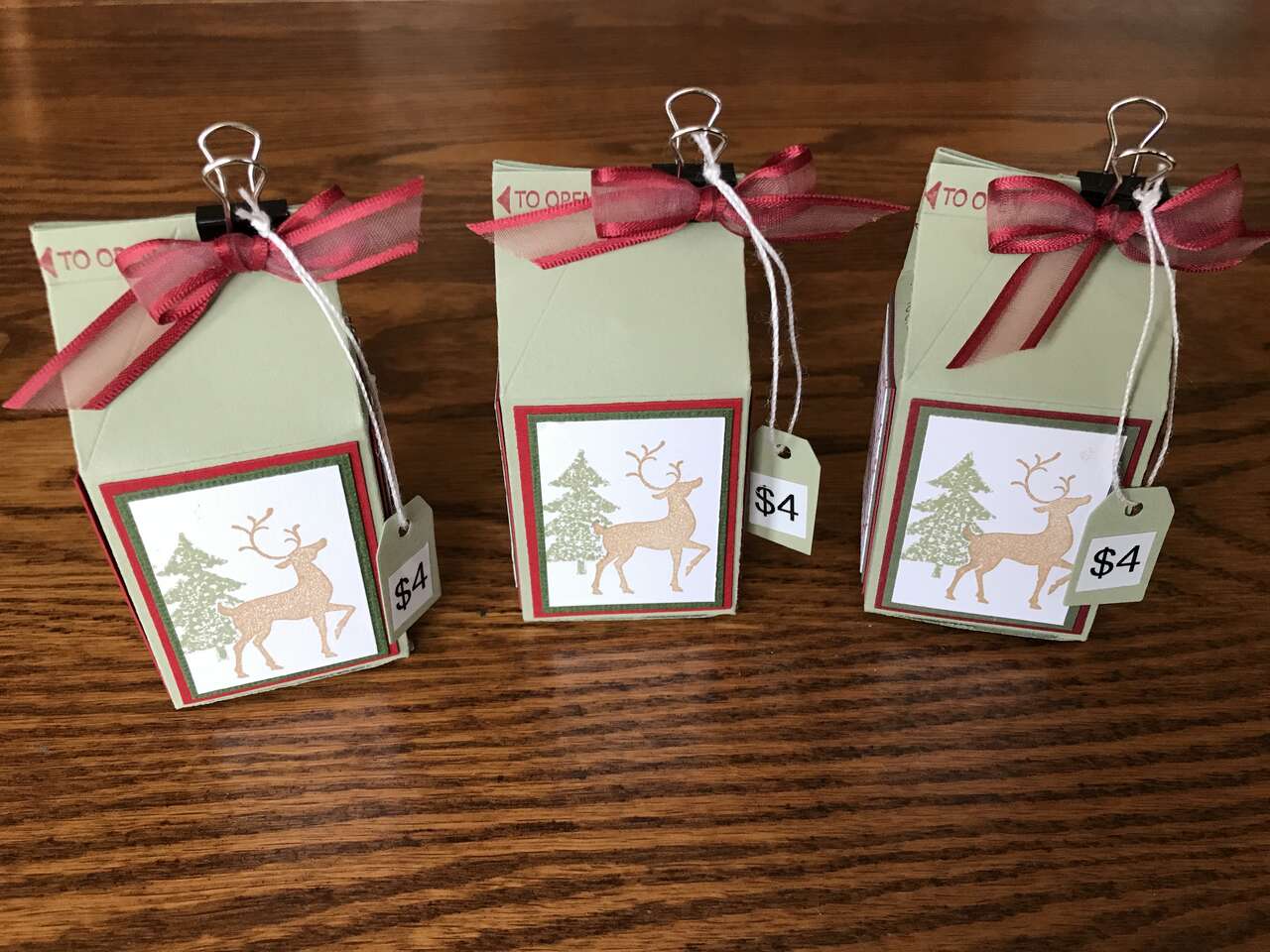 Christmas boxes showing all 4 sides. I can make many other designs and colors. Let me know how many you want. 10% off for 5 or more boxes. Great for school children, teachers, friends, co-workers, grandchildren or children.