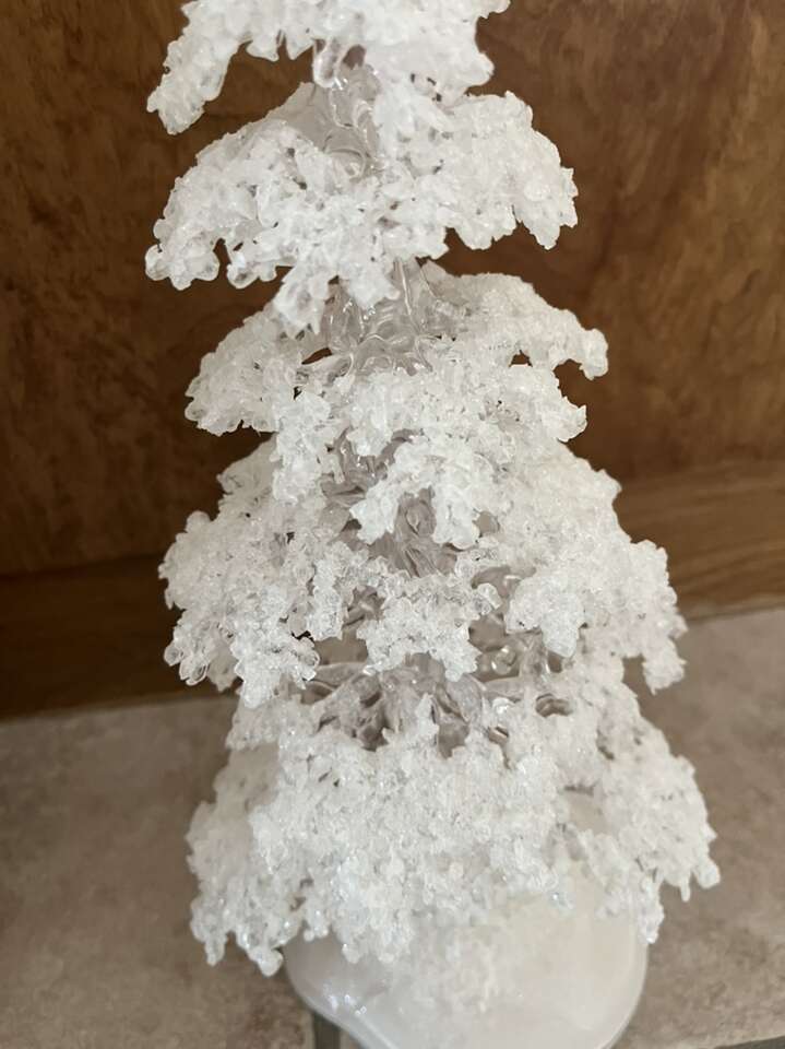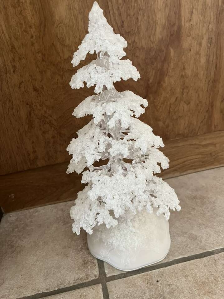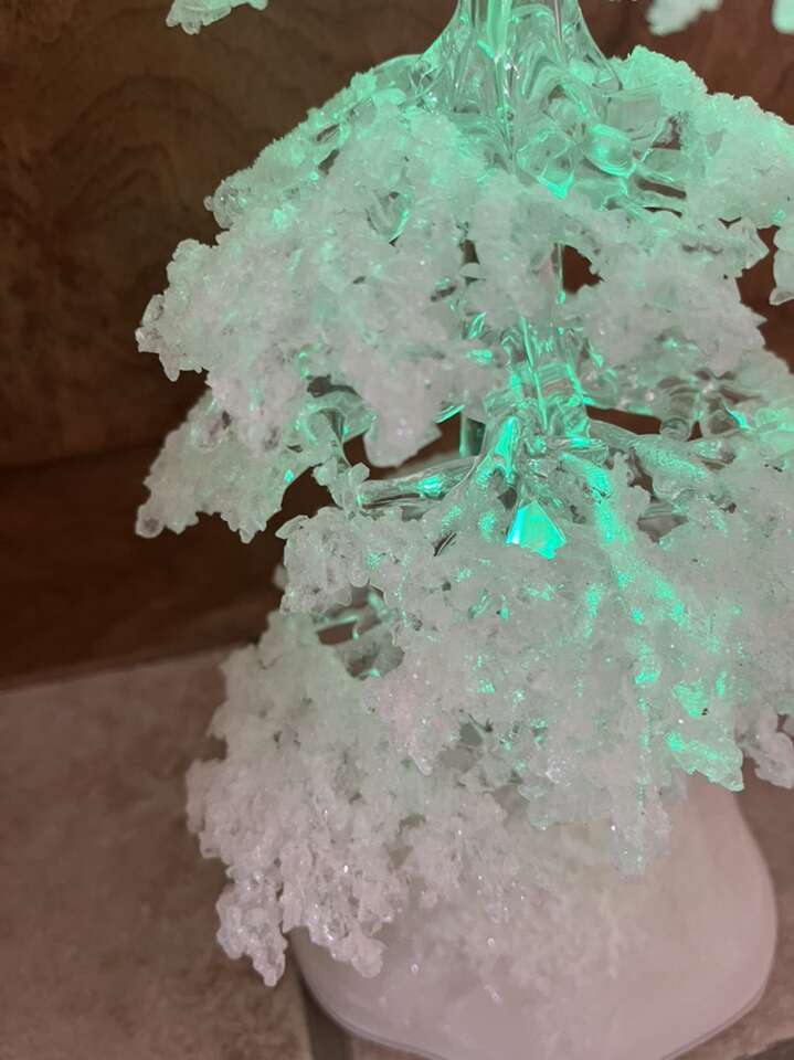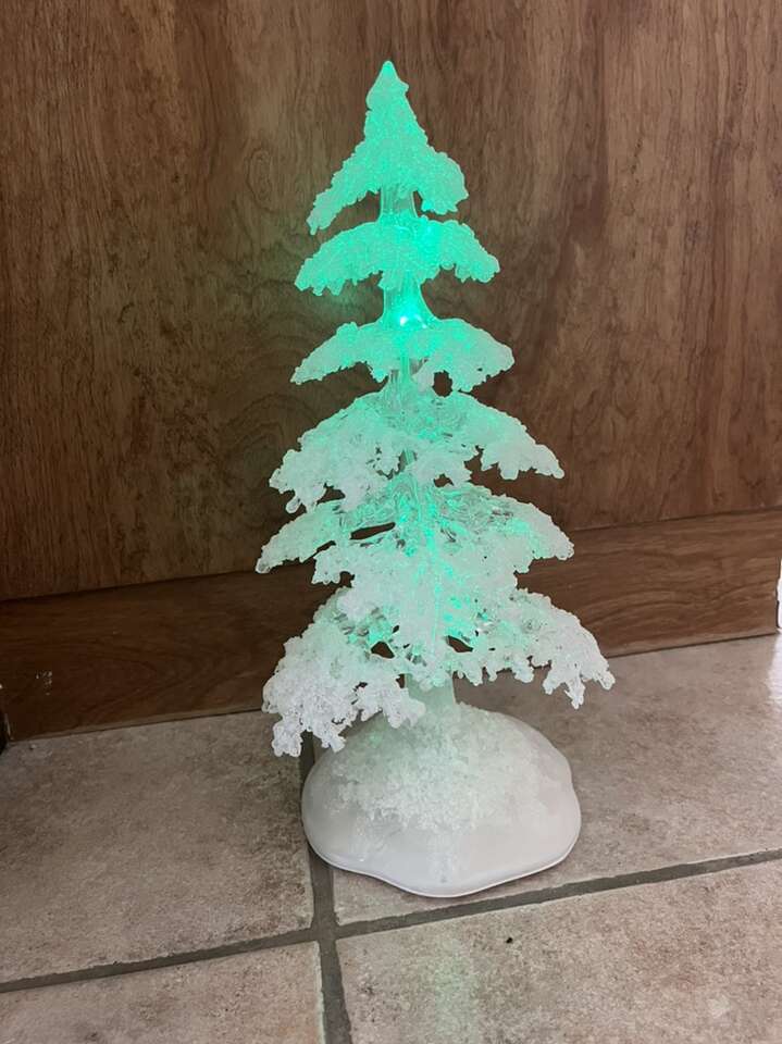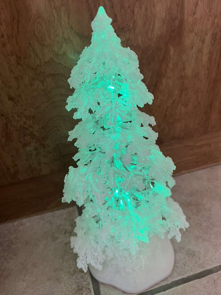 Crystal looking tree battery operated white with green lights 14” by 7 1/2