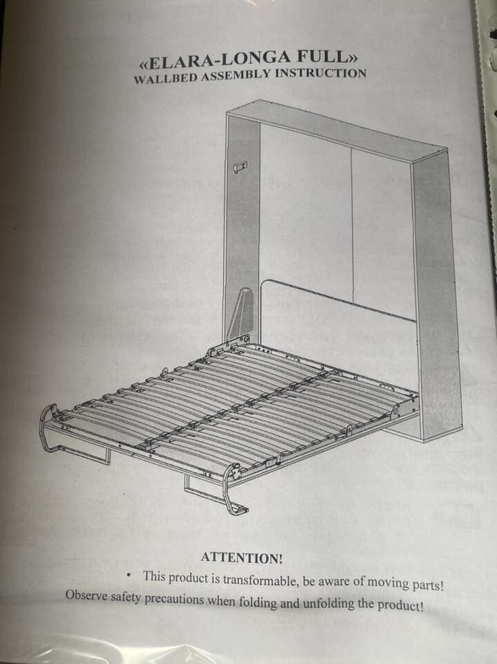 NYC Murphy Bed Elara Longa Full Bed Frame. New in box. Includes ONLY all hardware, bed frame and planks for Murphy bed pull down full size bed frame.