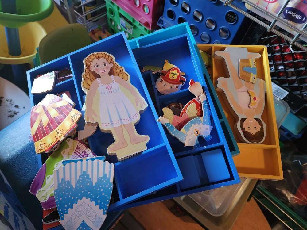10 Melissa and doug magnetic dolls and puzzles. They have been played with and mixed in Totes. So it would be hard to separate. $ 50 for all.