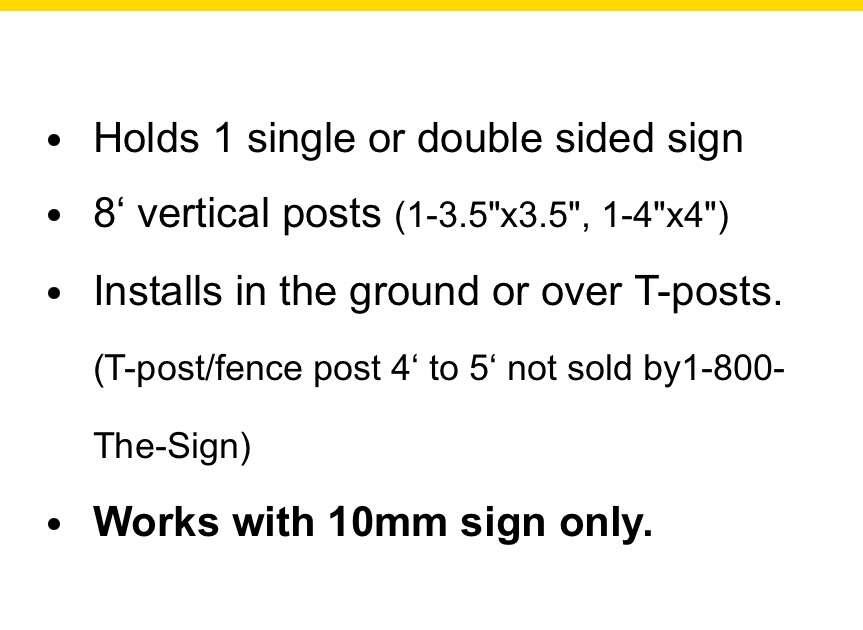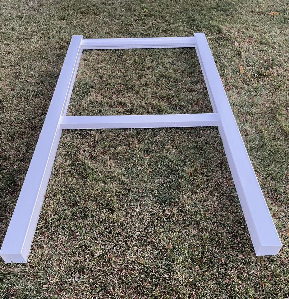 Description- 4‘ x 4‘ White vinyl in-ground sign frame kit with 8 foot uprights. See photos for more product information and specifications.