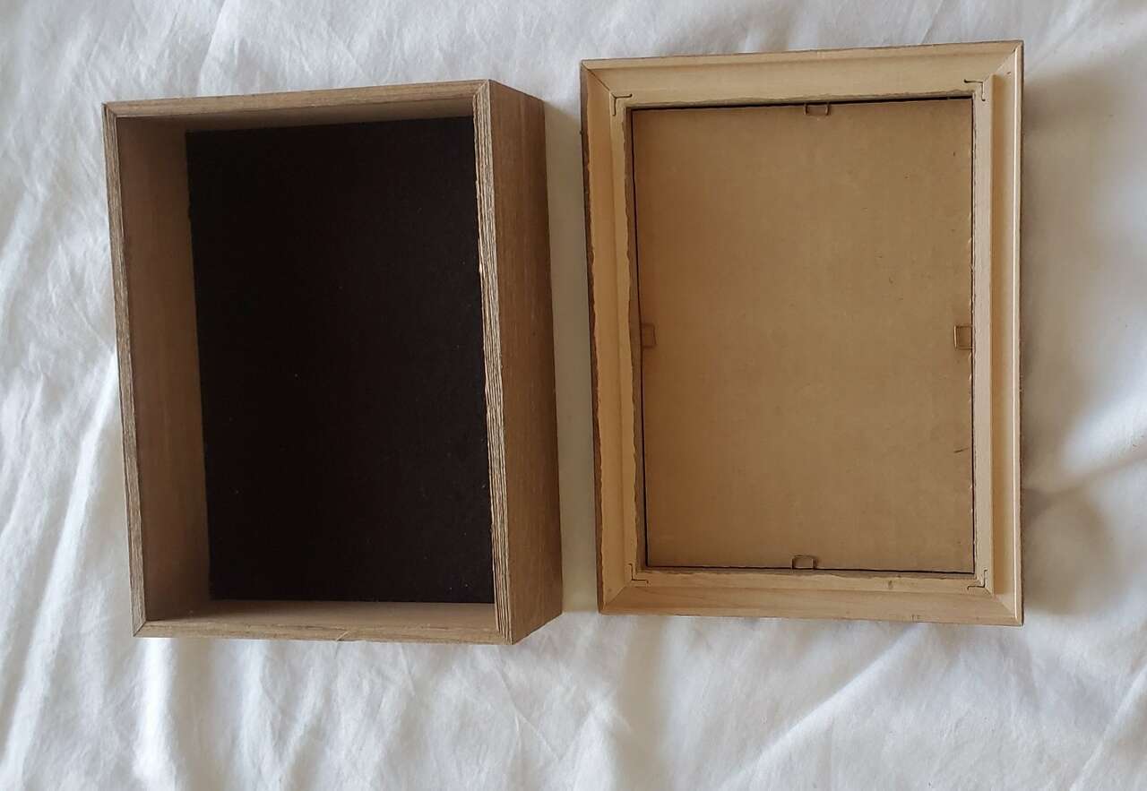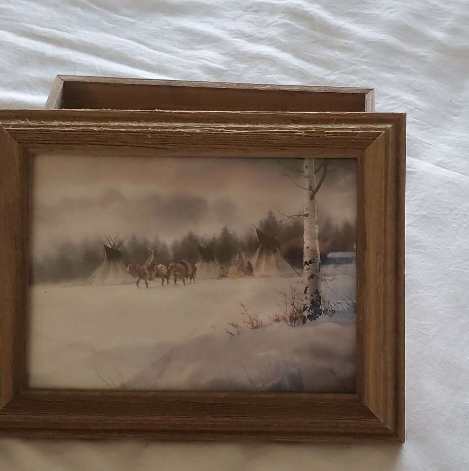 My hubby put his watch, change, tie pin etc in this sweet little box. Wood 9" x 7" x 3". Bought in Jackson Hole for $45 at The Ranch Store. Looks new