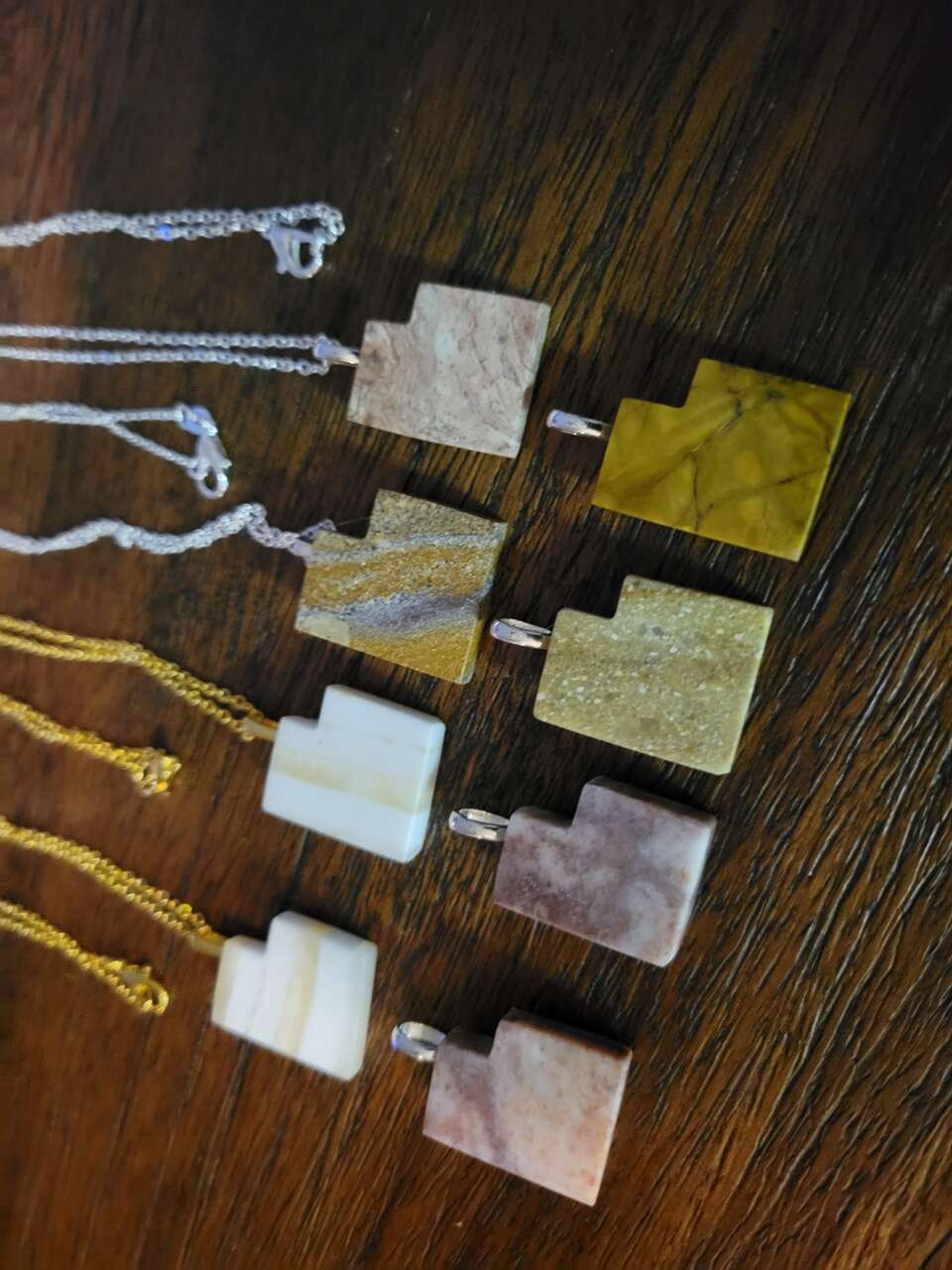 $15 each or 2 for $25, These Pendants are stones/ rocks all from utah, approx 1" tall and includes an 18" chain