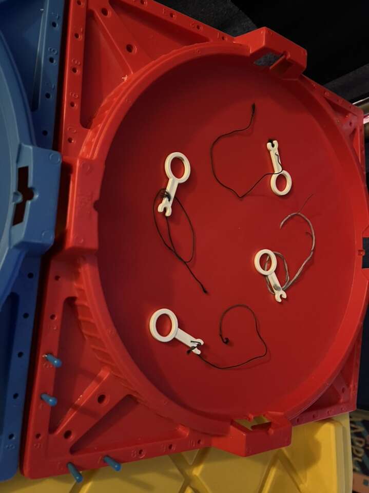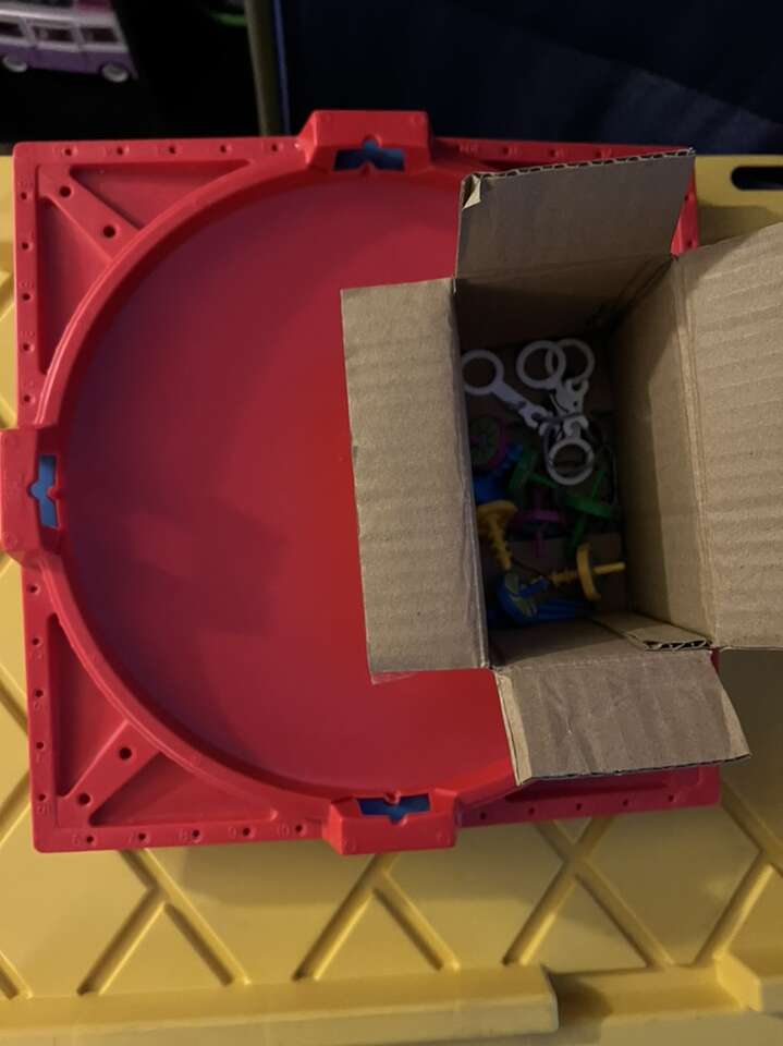 Battling Tops Game No original box that they came in 2 Arenas 8 Tops 4 Pull Tabs 4 Score Tabs Two partials to make one Haven’t seen this game around for ages Fun game to play or watch As is $40.00