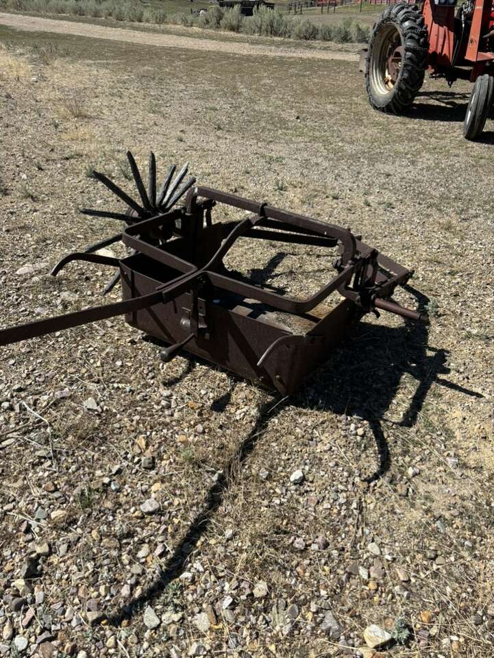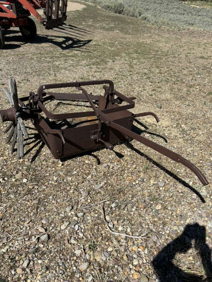 Remanence of one wooden wheel left on it. Mostly complete without the wooden tongue. Pretty much complete. U just don't see many of these around.