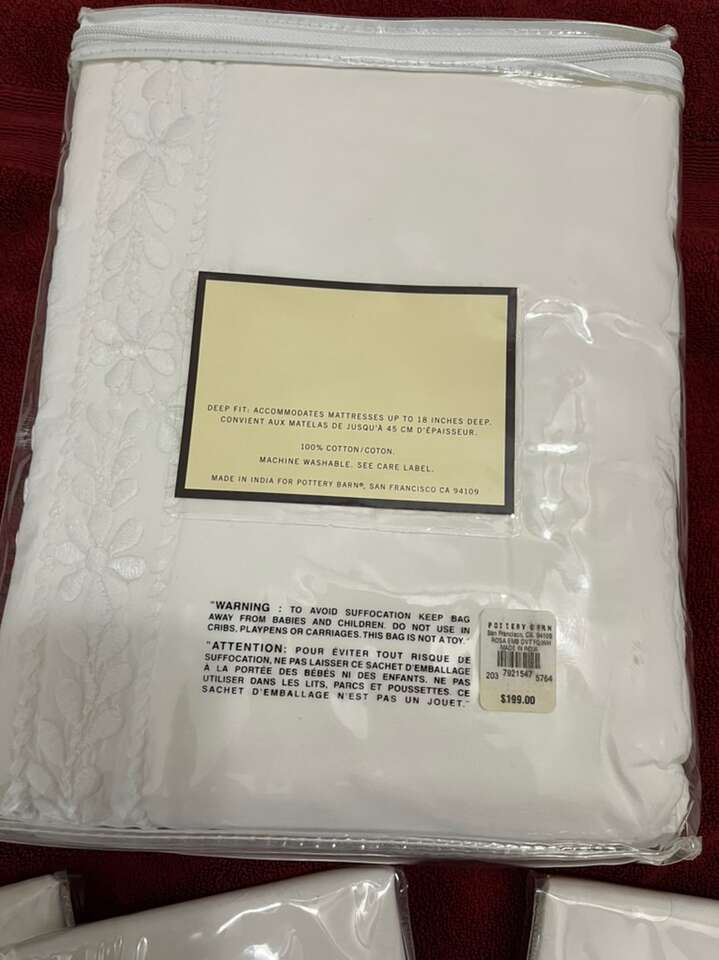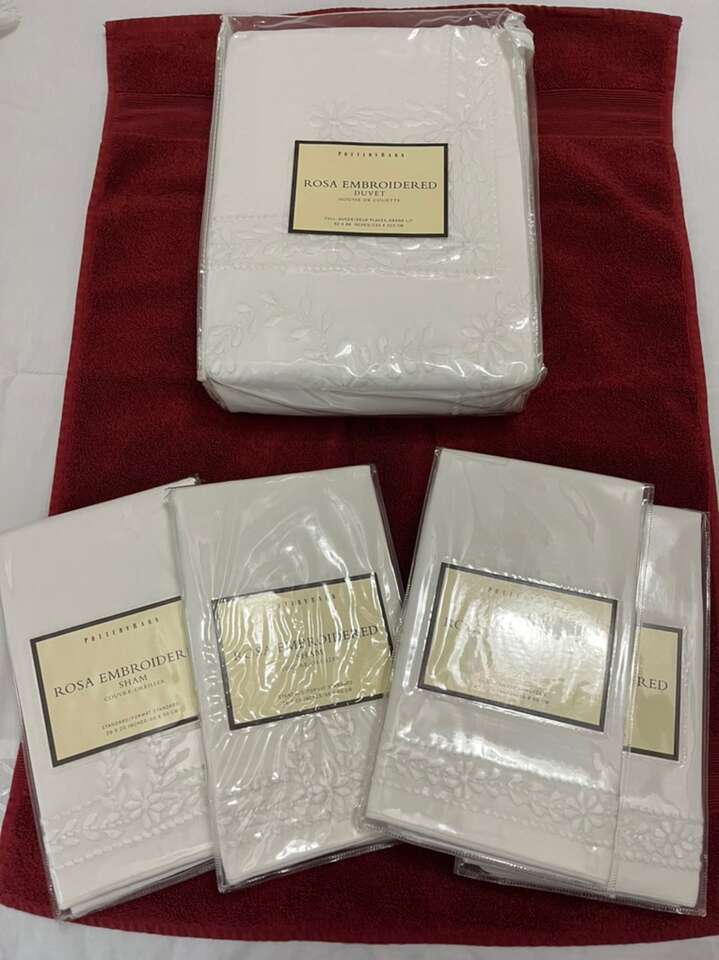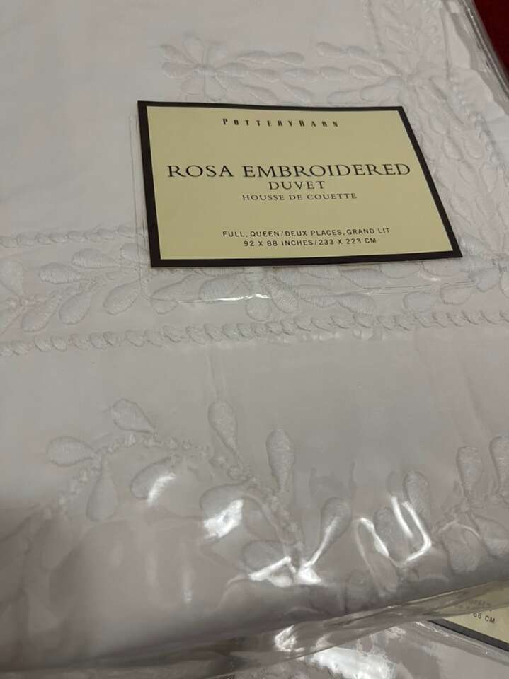 This gorgeous… “Rose Embroidered Duvet Cover” is BRAND NEW; white and machine washable.. I tried to show the embroidery design in the photos, as well as original prices.