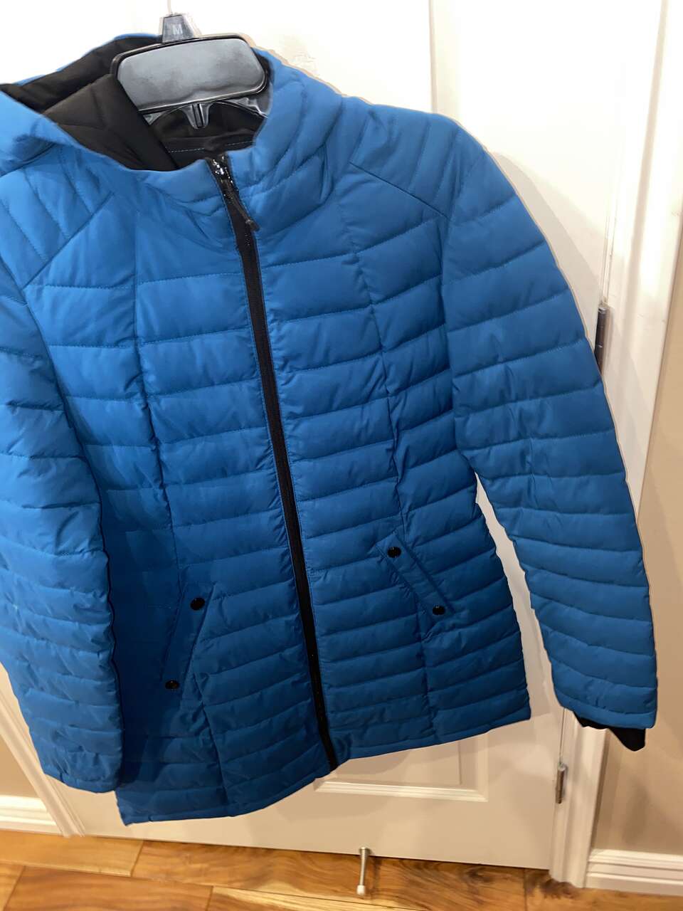 VenmoThis coat is really warm. It shows up blue in the picture but it’s a turquoise color. It is a women’s size small coat. It is in great condition. It has the thumb covers. Cash or Venmo.