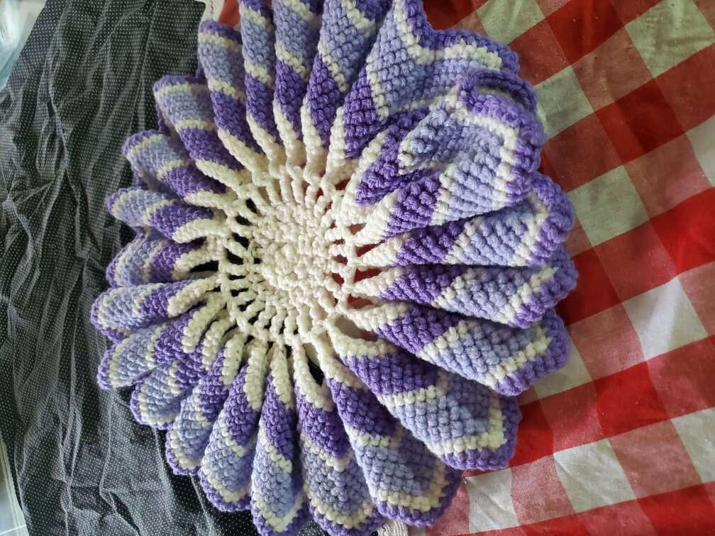 Very nice vintage Crochet Doily, soft yarn, purples and white, measures 14". Venmo or Cash.