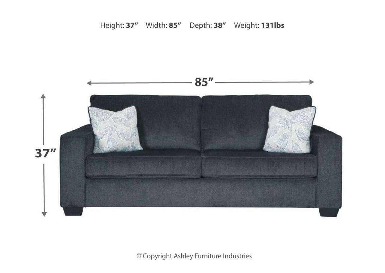 If style is the question, then this sofa is the answer. Sporting clean lines and sleek track arms, the decidedly contemporary profile is enhanced with plump cushioning and a chenille-feel upholstery, so pleasing to the touch. Sure to play well with so many color schemes, this sofa in slate gray includes a pair of understated floral pattern pillows for fashionably fresh appeal.Corner-blocked frame