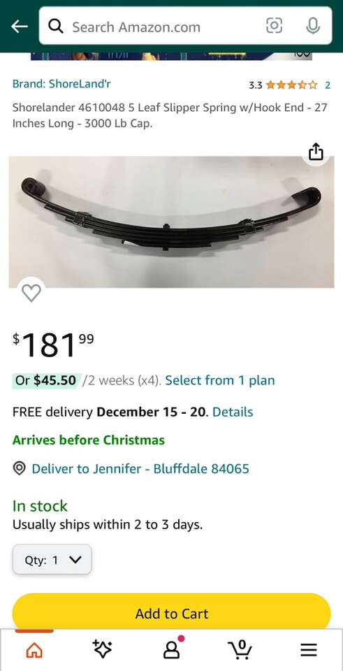 Description- (2) 27 inch overall length (with 25-1/4 inch center eye to eye) eye slipper leaf springs, (5-leaf). See photos for more product information and specifications.