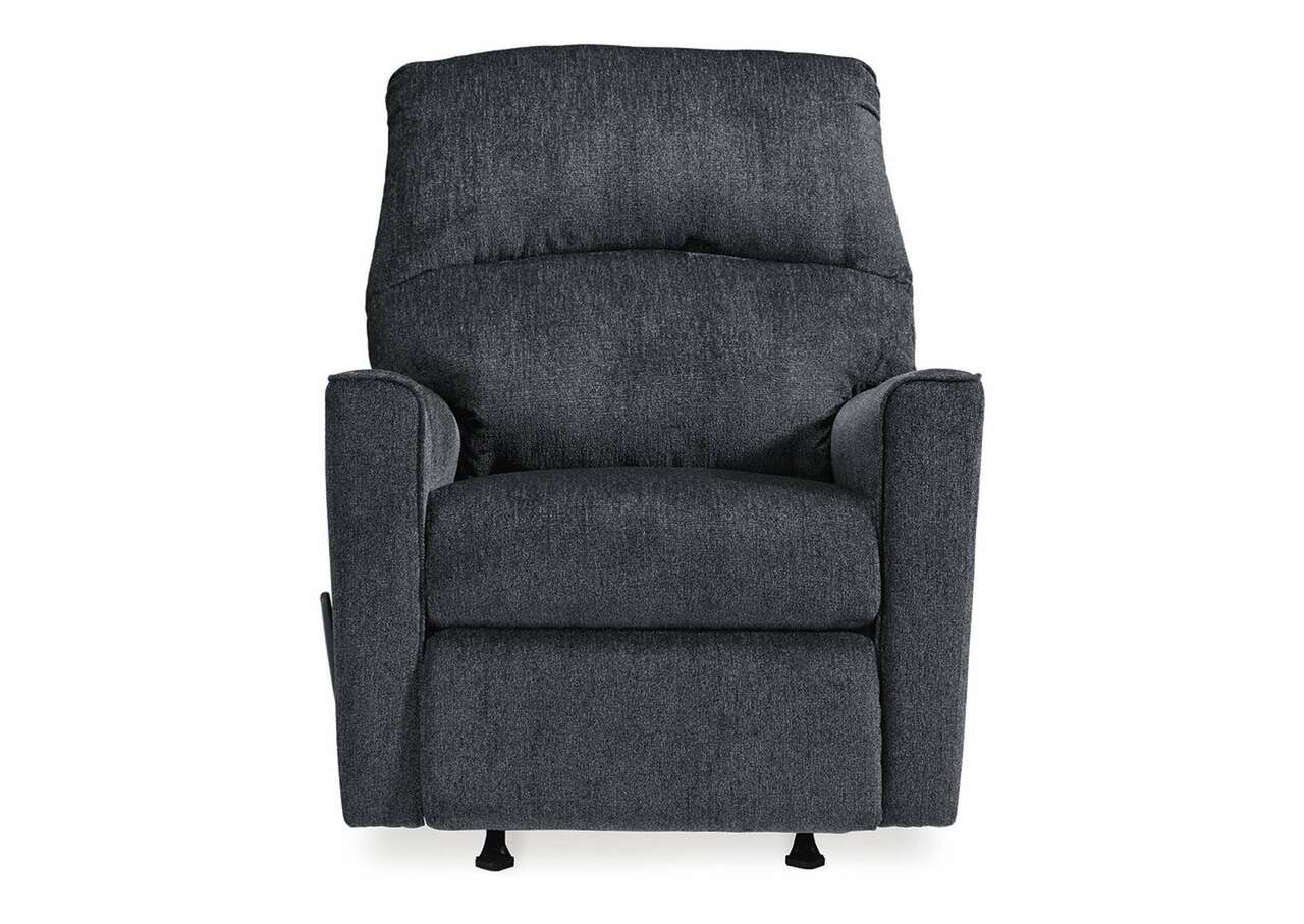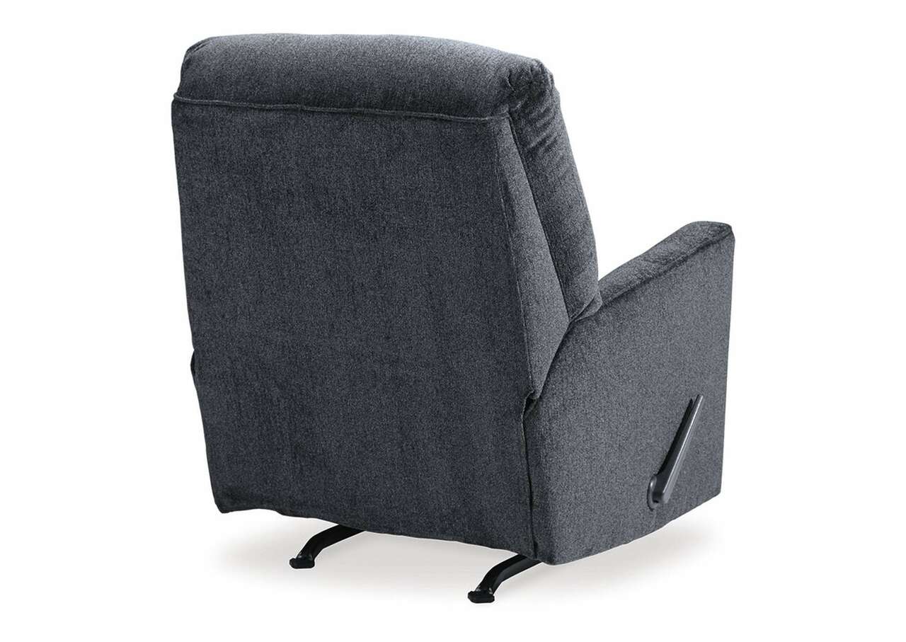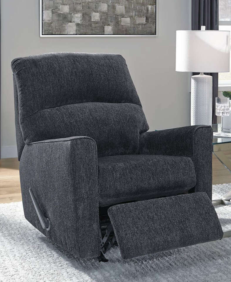 If style is the question, then this rocker recliner is the answer. Clean-lined profile is beautifully contemporary. Plush chenille fabric and plump cushioning make it so easy to comfortably kick up your heels. Richly neutral hue complements a variety of decor.Gentle rocking motion