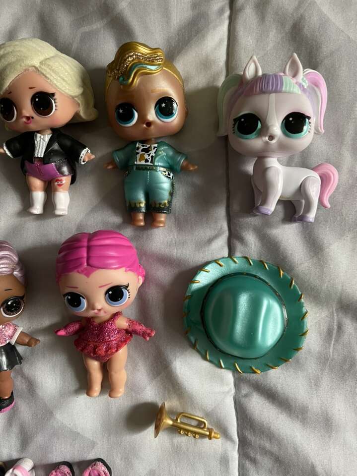 LOL dolls and accessories. Unfortunately there are some mismatched shoes and some glitter missing from the bottle (see photo).