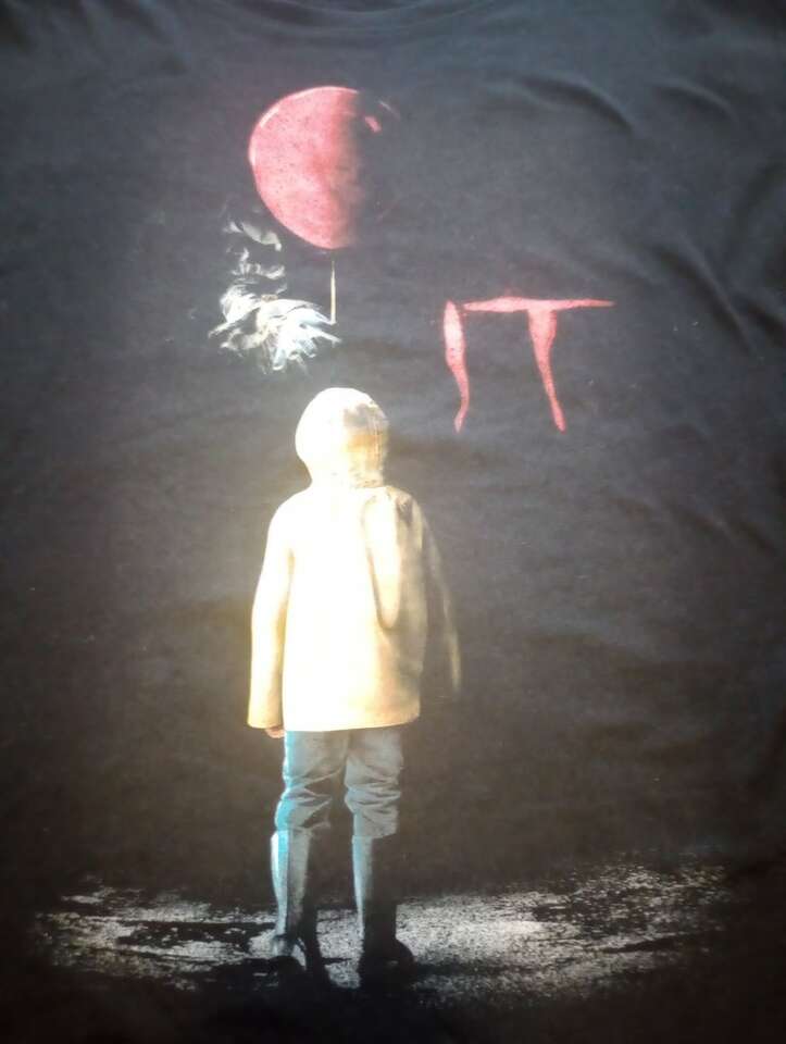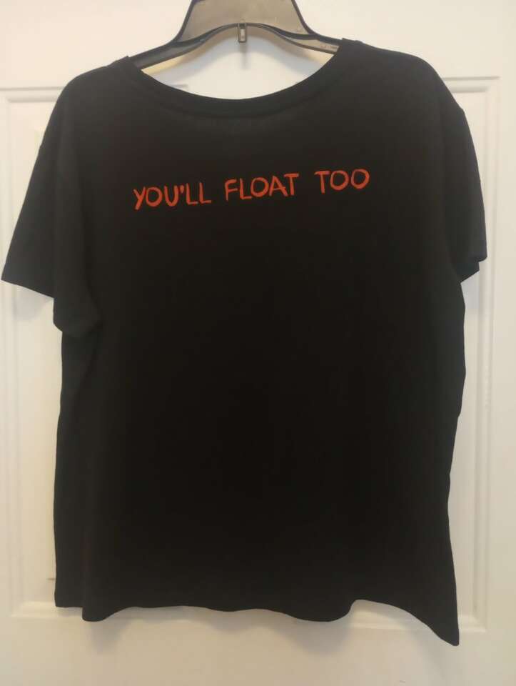 Like New T-Shirt from the movie, IT. Shows the face of Pennywise faintly in the balloon. Says: 'You'll Float Too' on the back. Juniors size XL. Bought this for my daughter, she wore it once or twice. From a pet and smoke-free home. In excellent, Like-New condition. $12 cash or Venmo. Will hold with Venmo. Text if interested. Feel free to check out my other ads-lots for sale.
