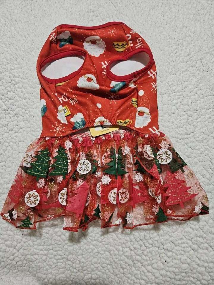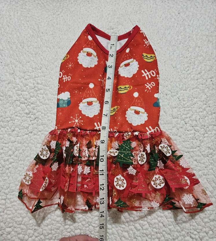 This 100% Polyester dress is new never used. Please double check the measurements in the pictures to make sure it will fit your little one. All my items come from a smoke free home. Any questions please feel free to contact me.