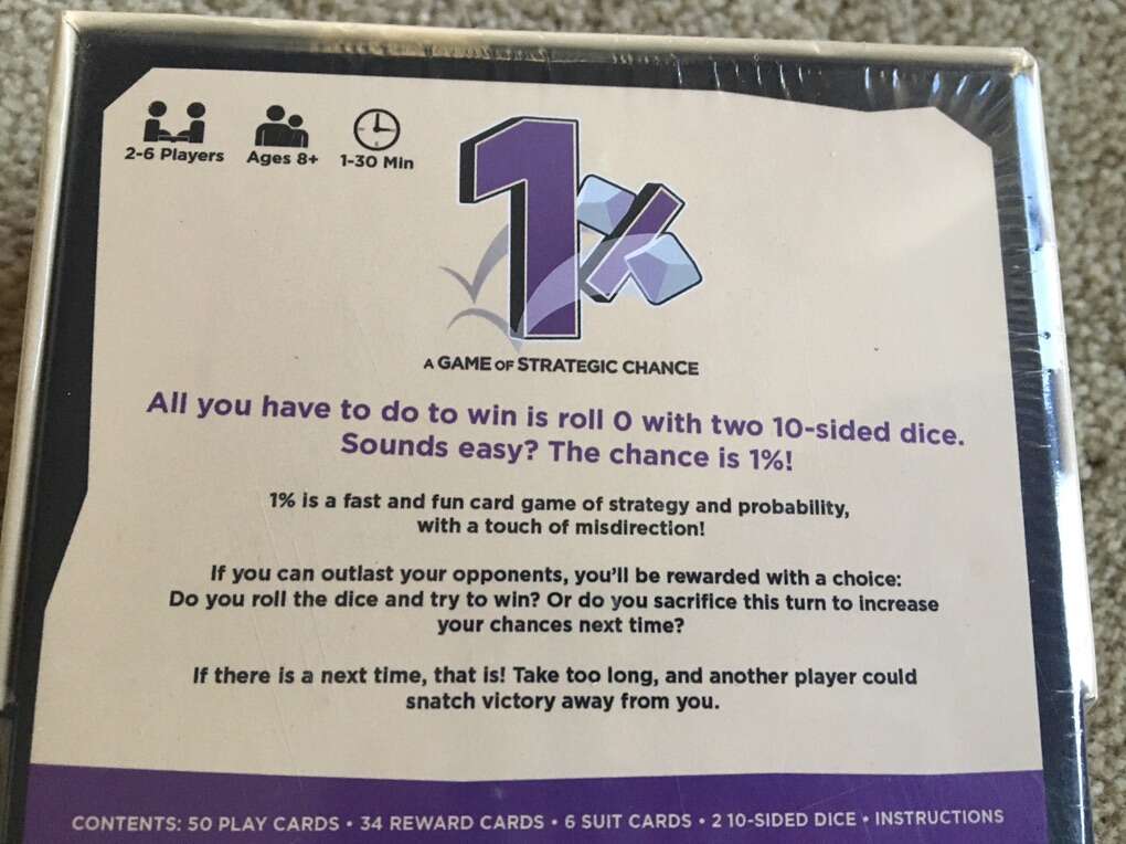 NEW (sealed in plastic) 1%: A Game of Strategic Chance. 2-6 players, ages 8+. Iconiq Studios, 2022. New, unopened condition. Text only. Cash or Venmo.