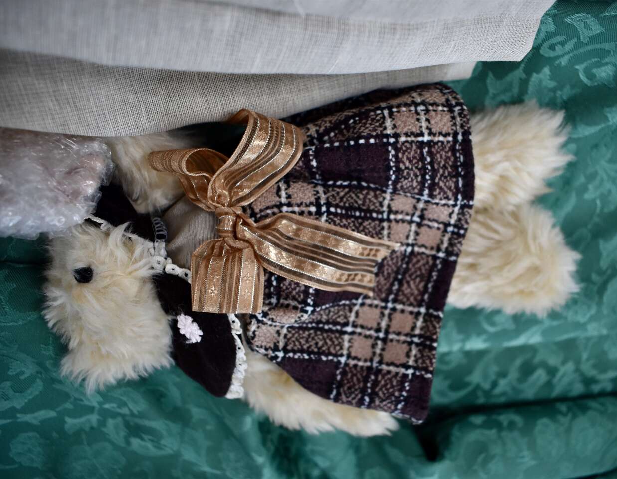 IT MEASURES… The Doll Measures… Approx. 28 1/2 inches tall and the Bear Measures Approx. 10 inches tall.