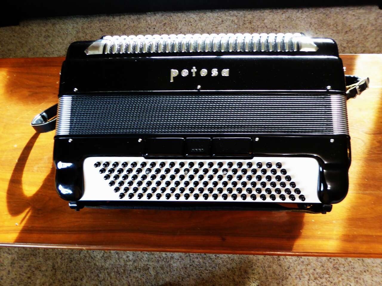 This is a vintage 1967 Professional Concert Model SM 150 Petosa Accordian . It Can be Plugged into an Amplifier or a Speaker System (cord included ). The Petosa family have been making Quality accordians for 100 years . They started out in ITALY and eventually branched out to the U.S.A. This is a Full size accordian and is very well made .It still has plenty of Life in it and it gets Excellent Sound. The added Plus to this model is that it can be Amplified when needed for larger gatherings. If you are not familiar with Petosa accordians , I would encourage you to go check out their Washington Locations Website.I also encourage you to come and play test it for your own satisfaction. ( open to reasonable offers).