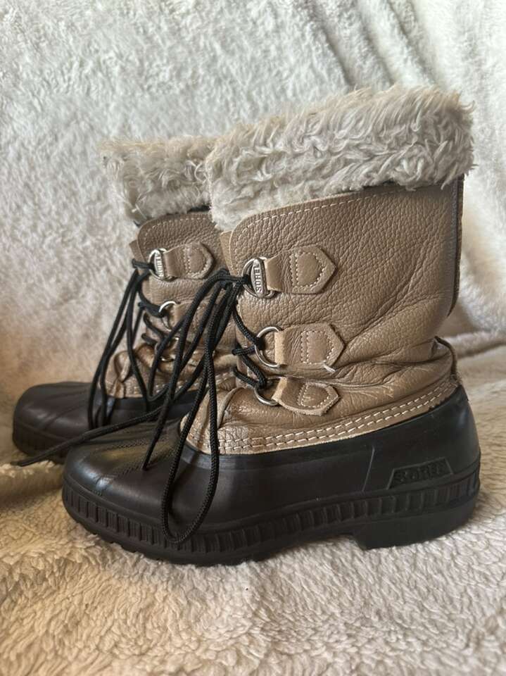 Sorel size 4, waterproof winter snow boots. These have the beige leather uppers and a black rubber foot bed. These are in good condition. Some wear on the sole. See photos for details. I take cash or Venmo. Text is best. 801-201-4446. Check out my other ads for additional sizes and styles.