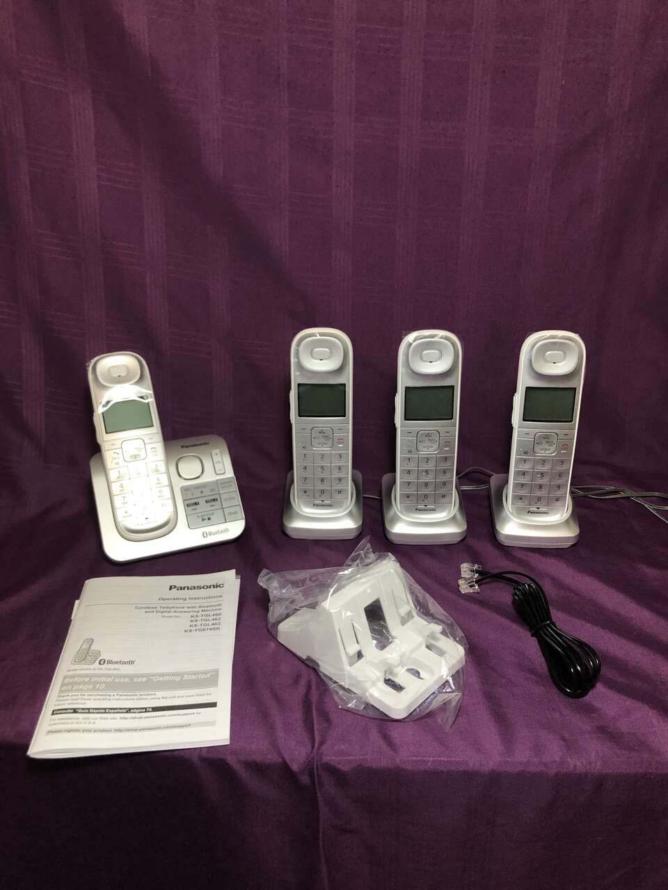 VenmoNever used, still has plastic on phones and in original box and all paperwork. Includes 4 white/silver phones with docking stations and one answering machine. Fantastic deal!