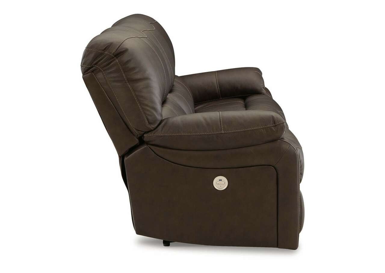 Focus on function. The practical Leesworth power reclining sofa balances contemporary character and irresistible comfort. Its affordable, expertly matched leather and faux leather upholstery keeps your style up to speed without breaking the bank. Reclining with the touch of a button, this piece plays well in relaxed, luxe seating areas made for quality time.One-touch power control with adjustable positions and zero-draw USB port