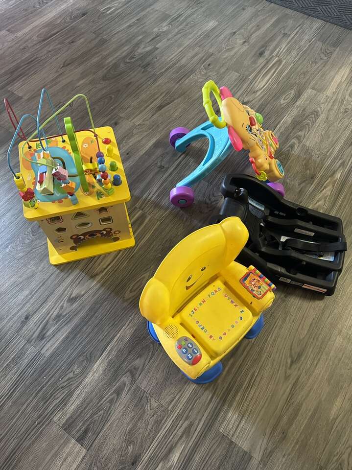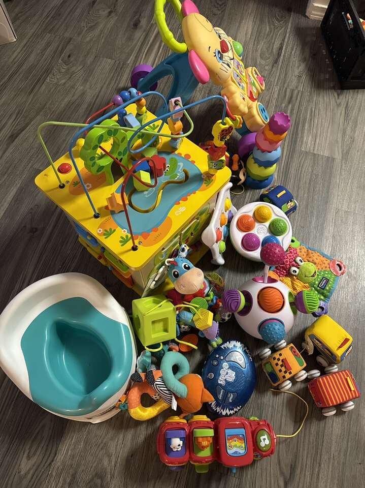 Baby toddler toys mb I can throw in a few more items most of this stuff was never used. Mk offer also have a pack and play for girl . Never really used .