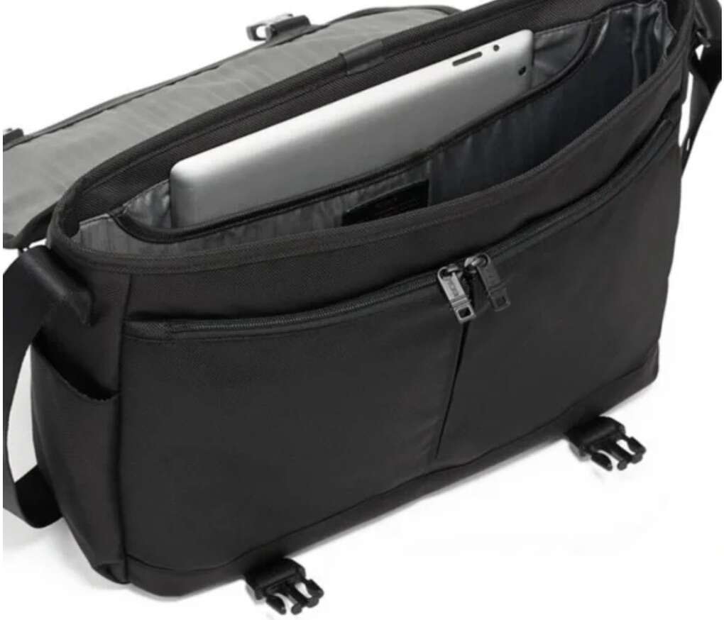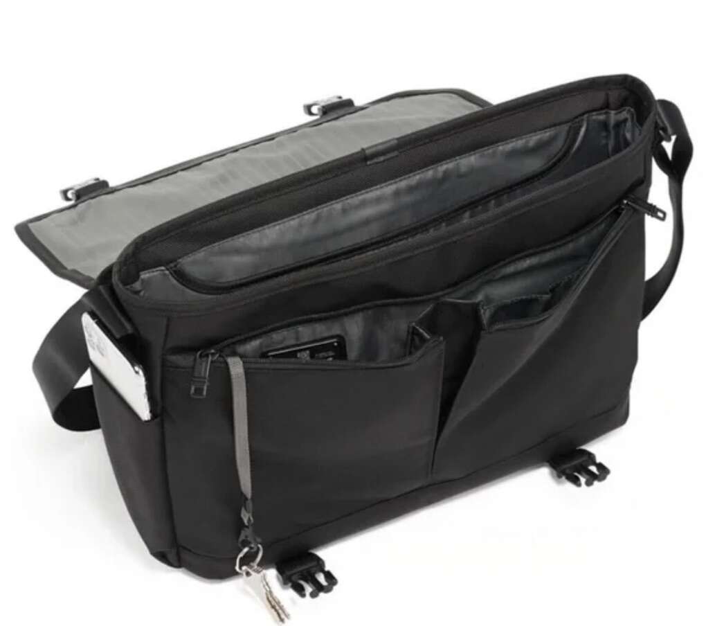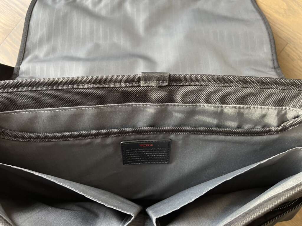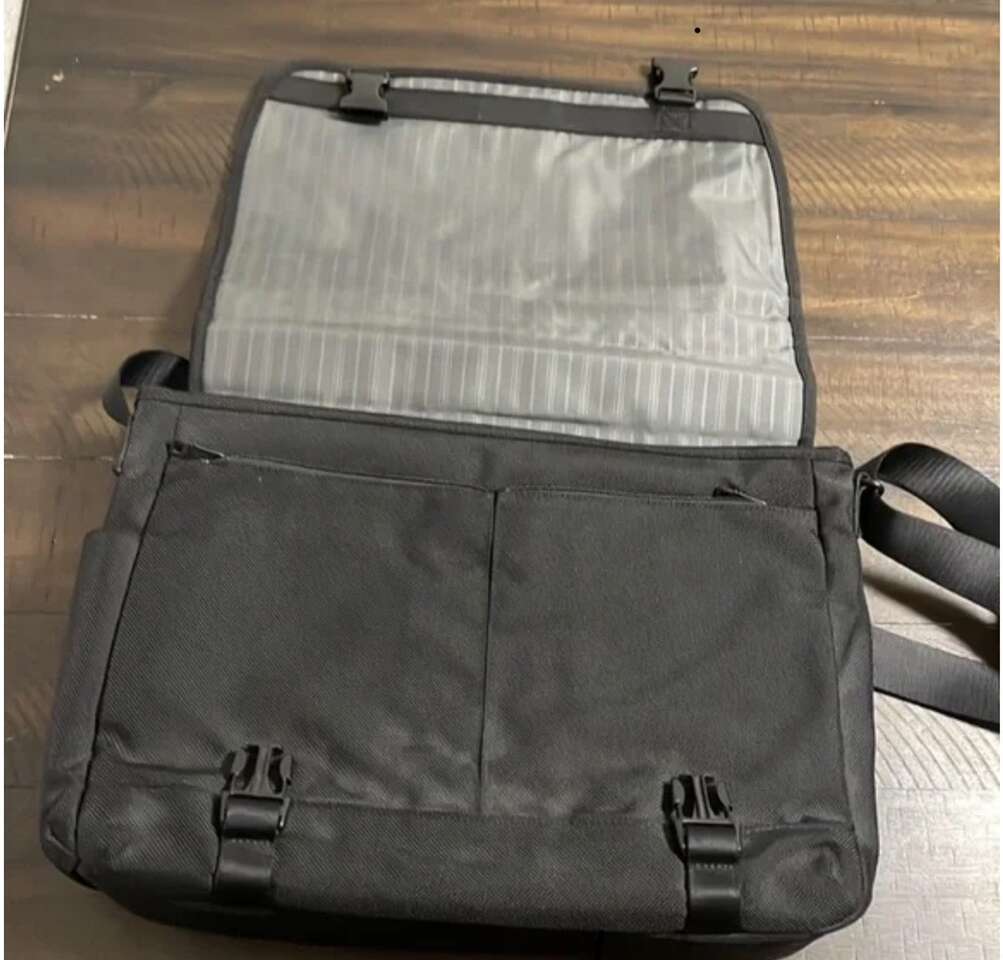Laptop bag by Tumi in excellent condition, $100, made from high-performance ballistic nylon, exceptionally durable, interior & exterior organizer pockets, adjustable removable shoulder strap, full-flap closure to main compartment with speed clips, top-haul carry handle, luggage tag attached at front flap, 1 front zipper pocket, 1 side open pocket, 1 back zipper pocket, 2 zipper pockets under the flap, interior Tumi Tracer ID tag, pen loop, key leash, 2 business card pockets, 1 media pocket, 1 iPad pocket, 2 open pockets, L: 16, H: 11, W:4
