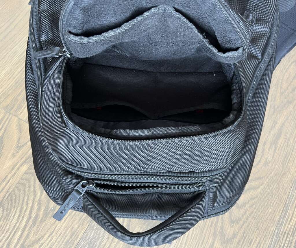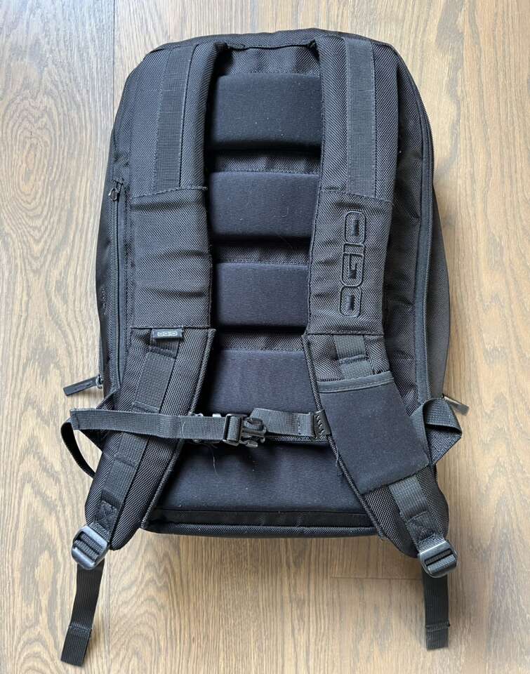 Laptop backpack by OGIO in excellent condition, $20, featuring abrasion-resistant fabrics, padded laptop & tablet pockets, & internal panels designed for security