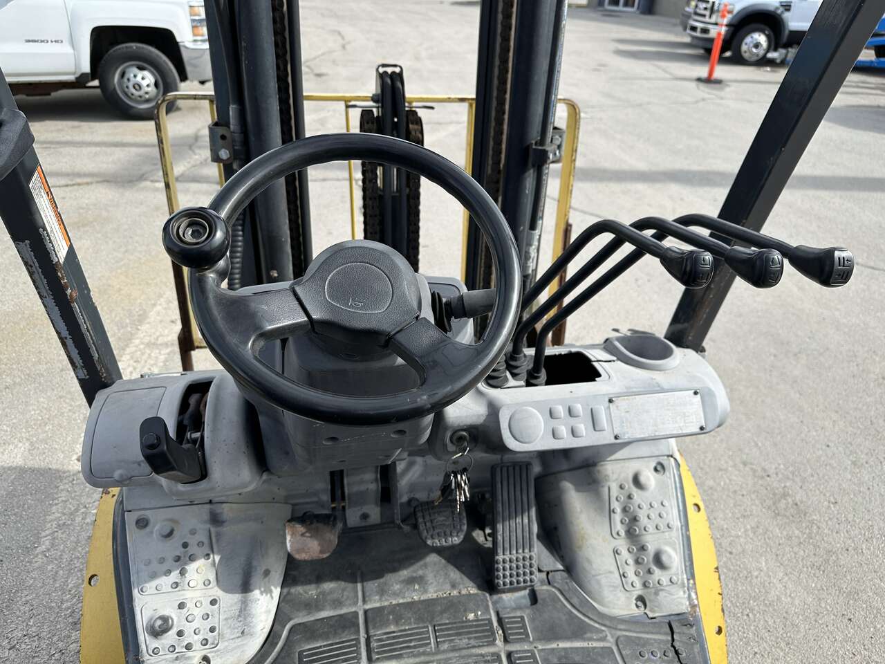 DIMENSIONS W: 46" x H: 7' 1” x L: 8' 9" plus forks Forks: 42” x 5” Carriage Width: 38.75” Weight: 8,750 LB