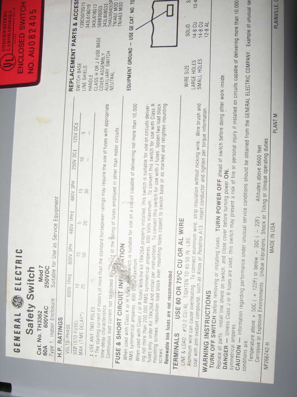 Used GE fused Safety Switch with 40 amp fuses included.