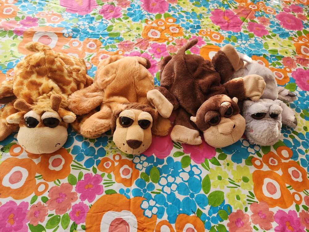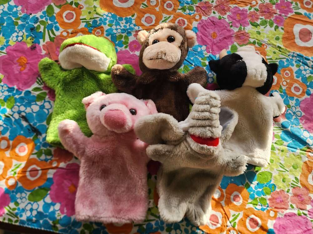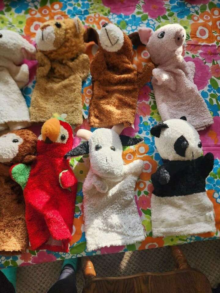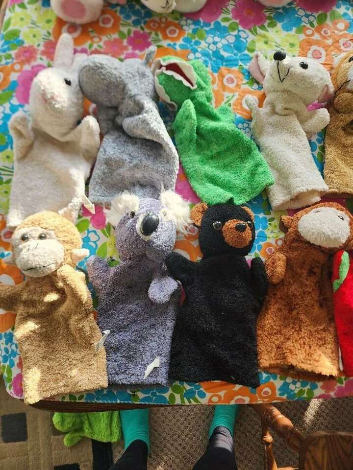 I have 50 ish puppets, hats and paw animals and masks total. All in a large tote. Prices vary from 3-5 dollars per puppet. $75 for the entire tote.