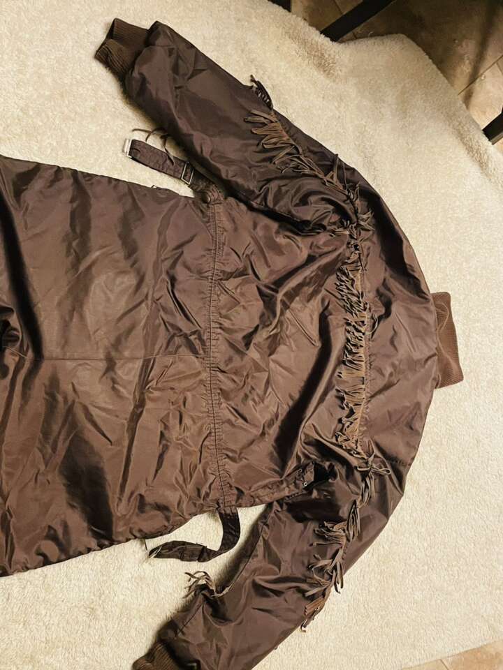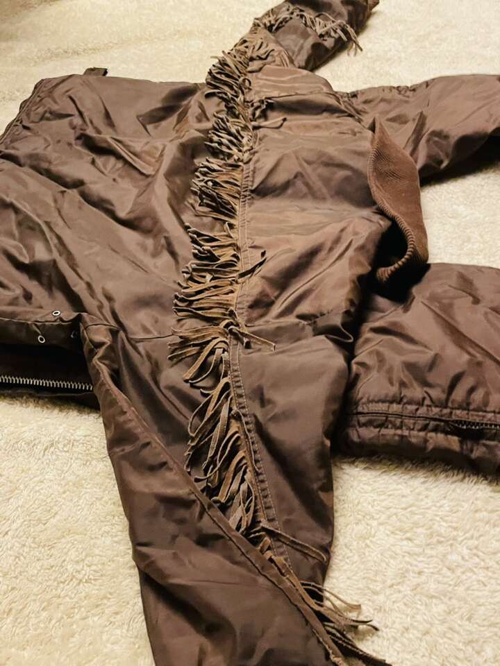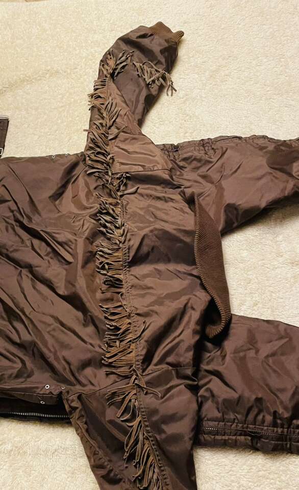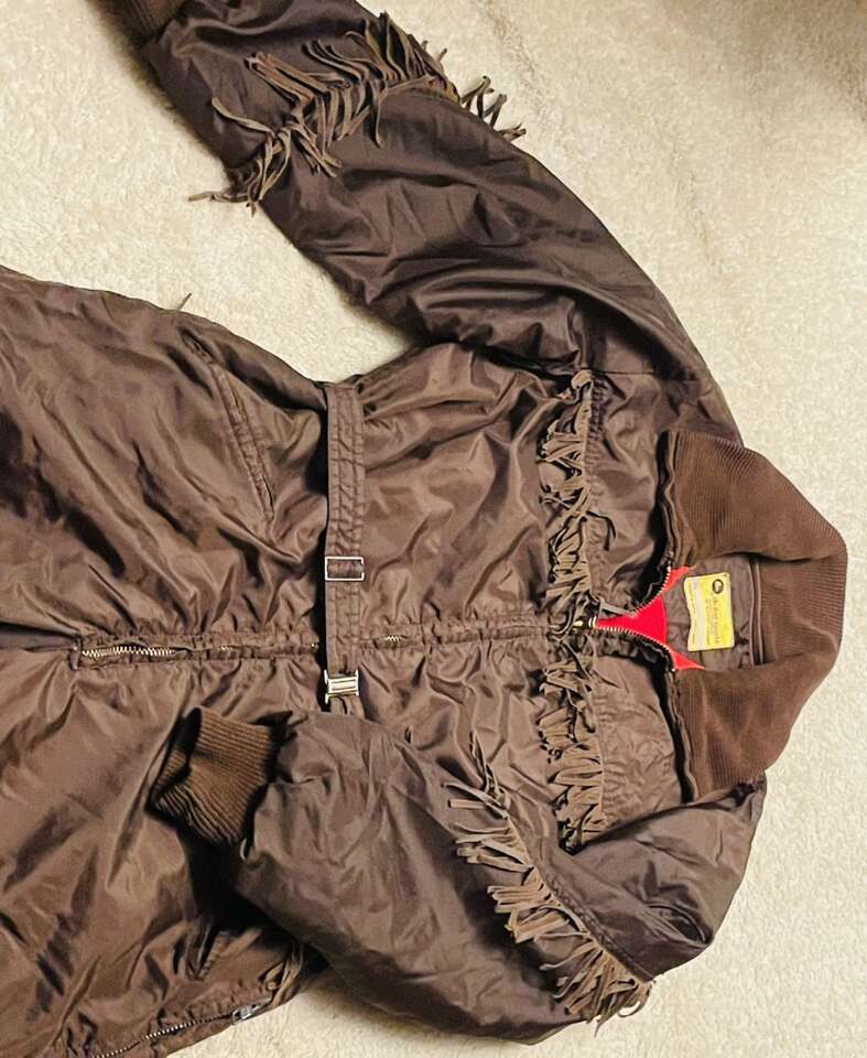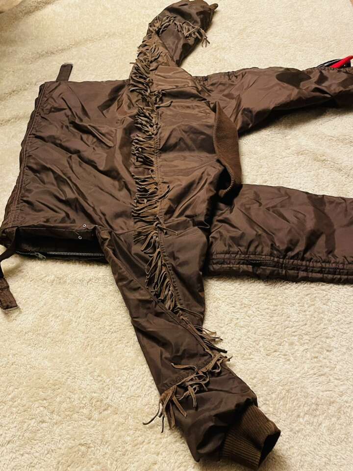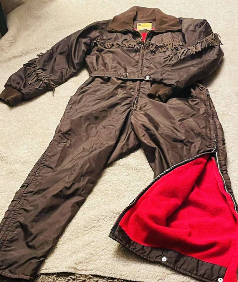 Amazing vintage ski doo snowsuit, incredible vintage color with fringe running the entire length of arms back and chest, bright red fleece interior . Unable to find another one online .