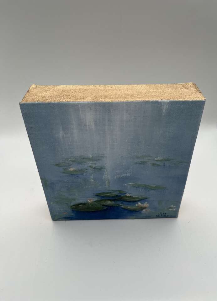 Venmo6x6x1.5 inch impressionist Oil painting on a handmade block canvas with gold painted edges. Waterlilies. Original, single piece of work. Painted by seller, Signed and dated. I take Venmo @jen-hestad. Several scenes to choose from. $80 each with free shipping and I will combine shipping! Or pick up. Check out more ads by seller for more works of various sizes or on Instagram @jen_paints_sometimes. Call or text Jen 801-814-0577