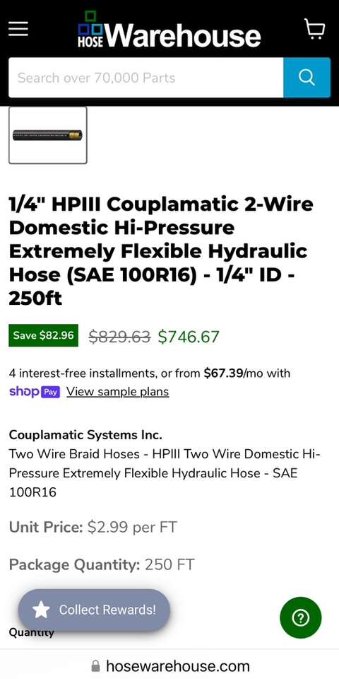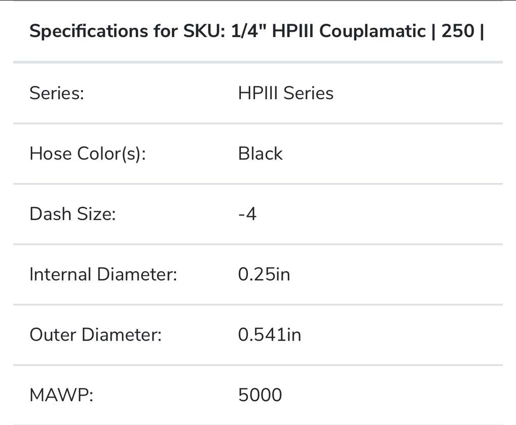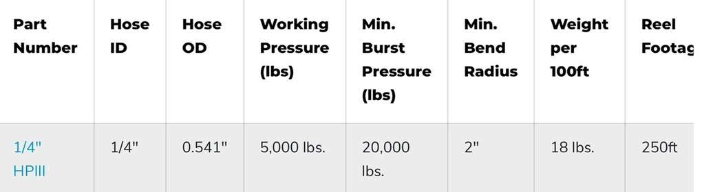 Description- 250’ Roll of 1/4” ID, HPIII Couplamatic, 2-wire, high-pressure extremely flexible, hydraulic hose. See photos for more product information and specifications.