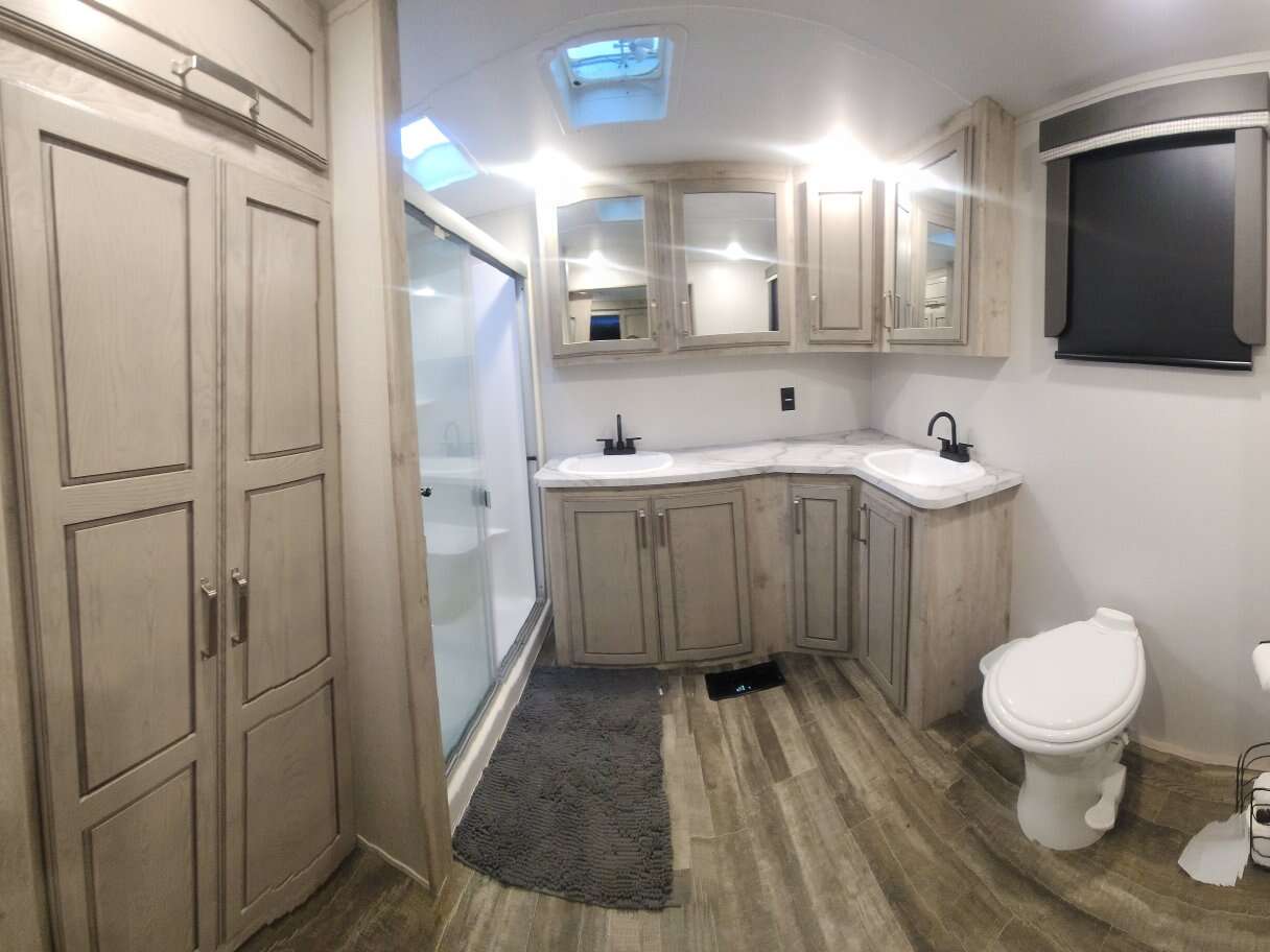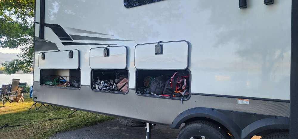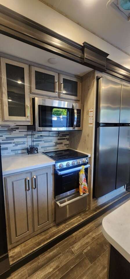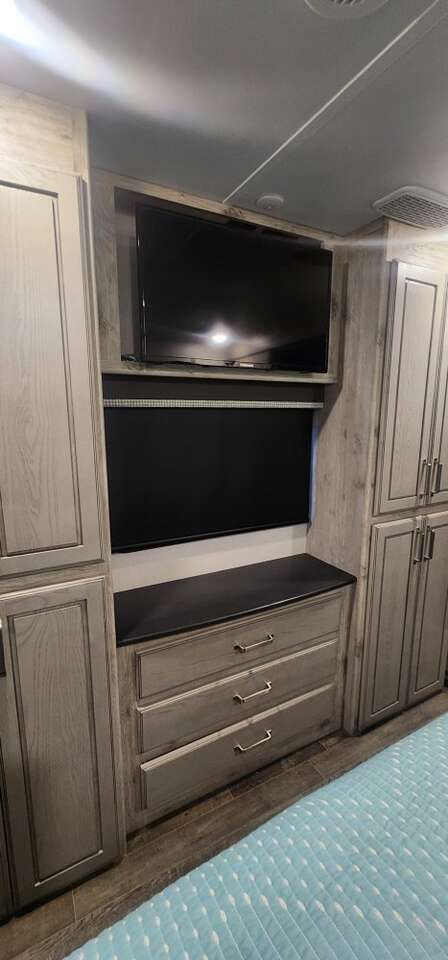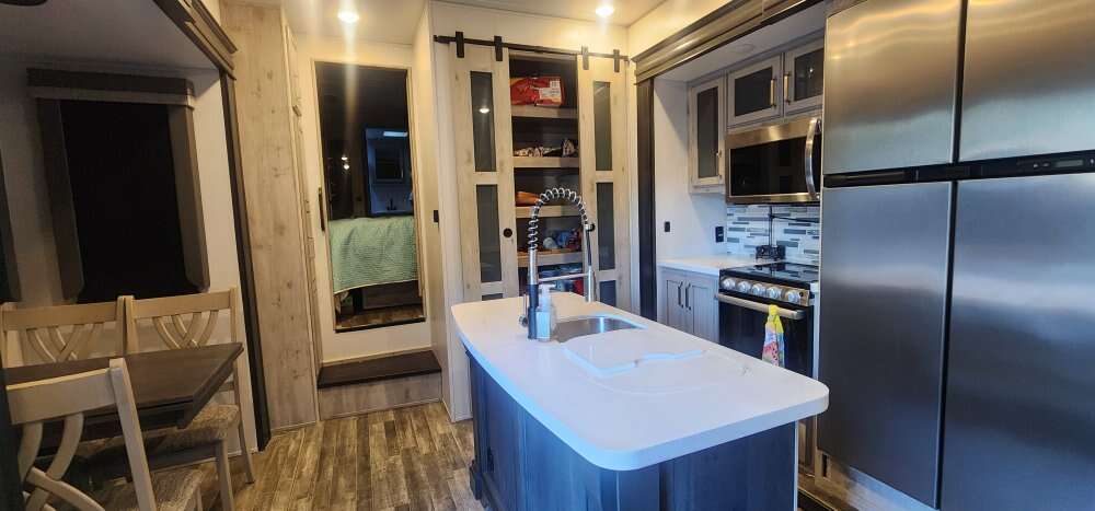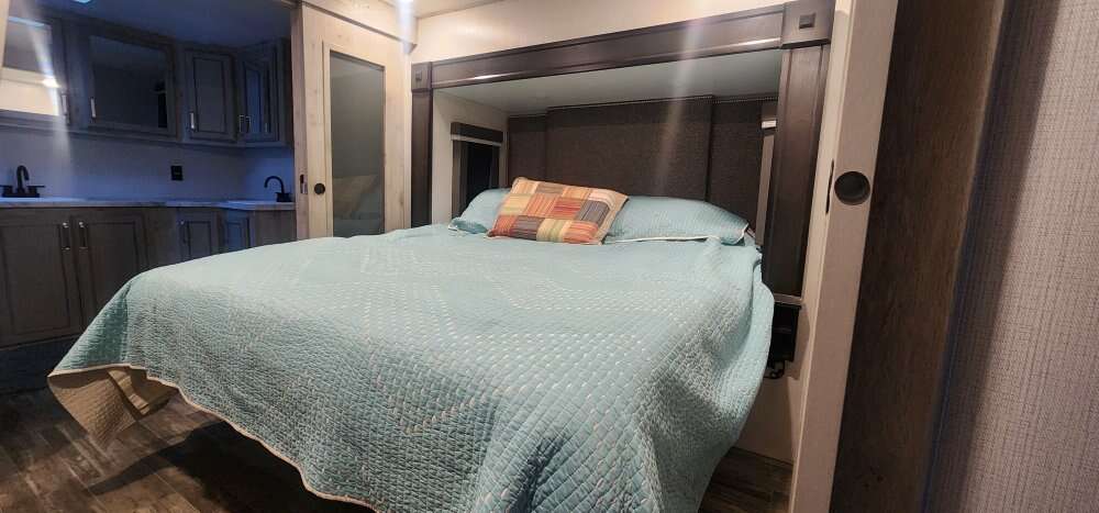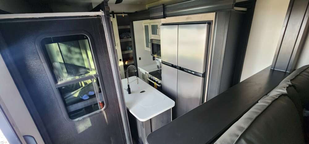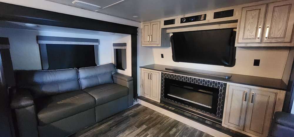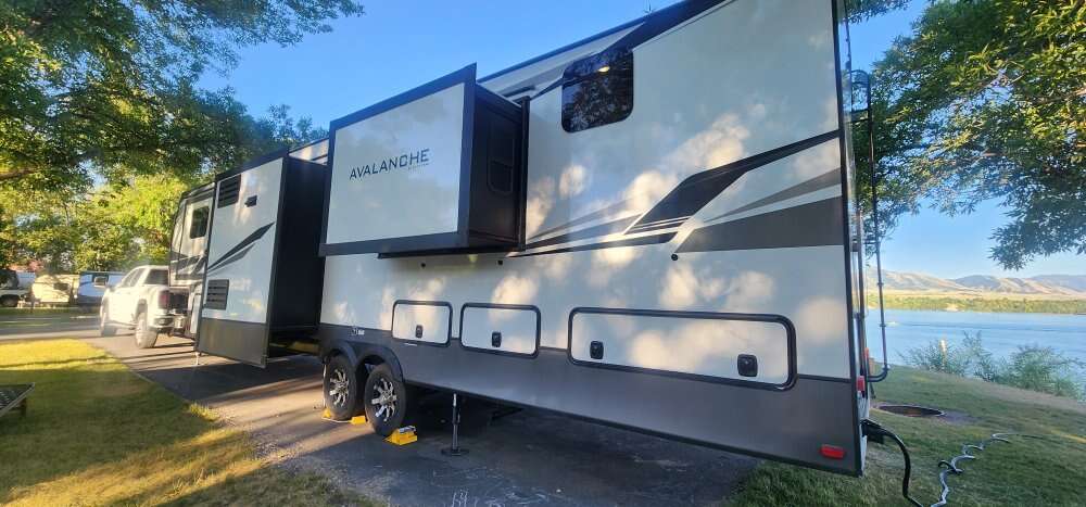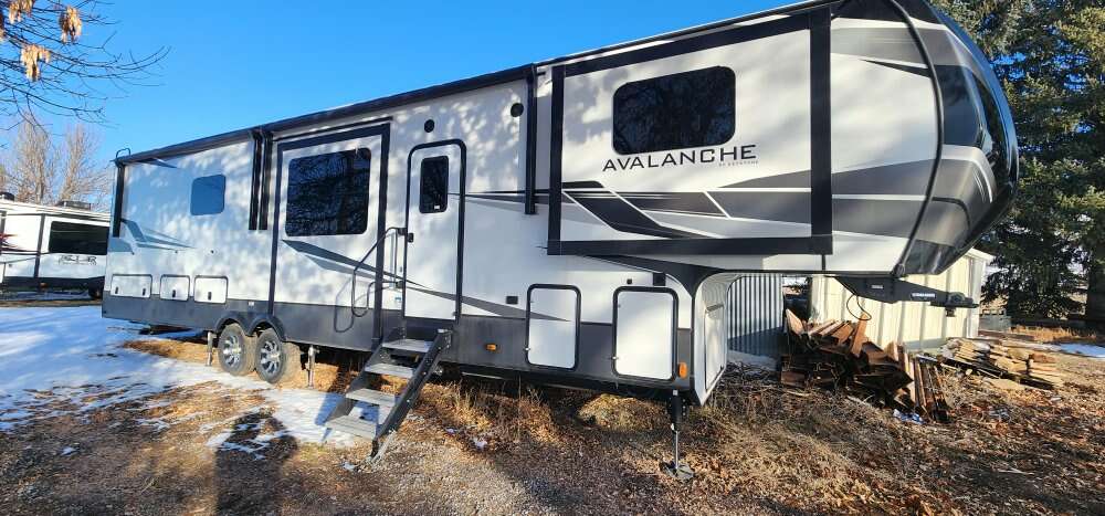 BEAUTIFUL Home Away From Home trailer! Selling our 2021 Keystone Avalanche 382FL 5th Wheel Trailer because we are not using it like we thought we would. We're just too busy running around with our children's sports right now. Love this trailer, though! It's everything we've been wanting in a trailer, so it will be sad to see it go! Double fridge and freezer that can run off of gas only, hard to find front living room with 3 sitting areas, two of the couches fold out to beds, and the other are vibrating lounge chairs, TV that rises out of the cabinet in living room, that TV is hooked to built in DVD player and radio, speakers throughout and outside of trailer, TV in bedroom, a TV can also be mounted in the kitchen, fan in kitchen, two AC/heater units, large rear double sink bathroom, pantry, washer/dryer hookups available to be plumbed, , electric leveling, satelite hookup, solar hookup, black tank clean out, tow hitch, ladder, LOTS of storage! All the other stats are in the photos. Let us know if you have questions. Located in Lewiston, UT.