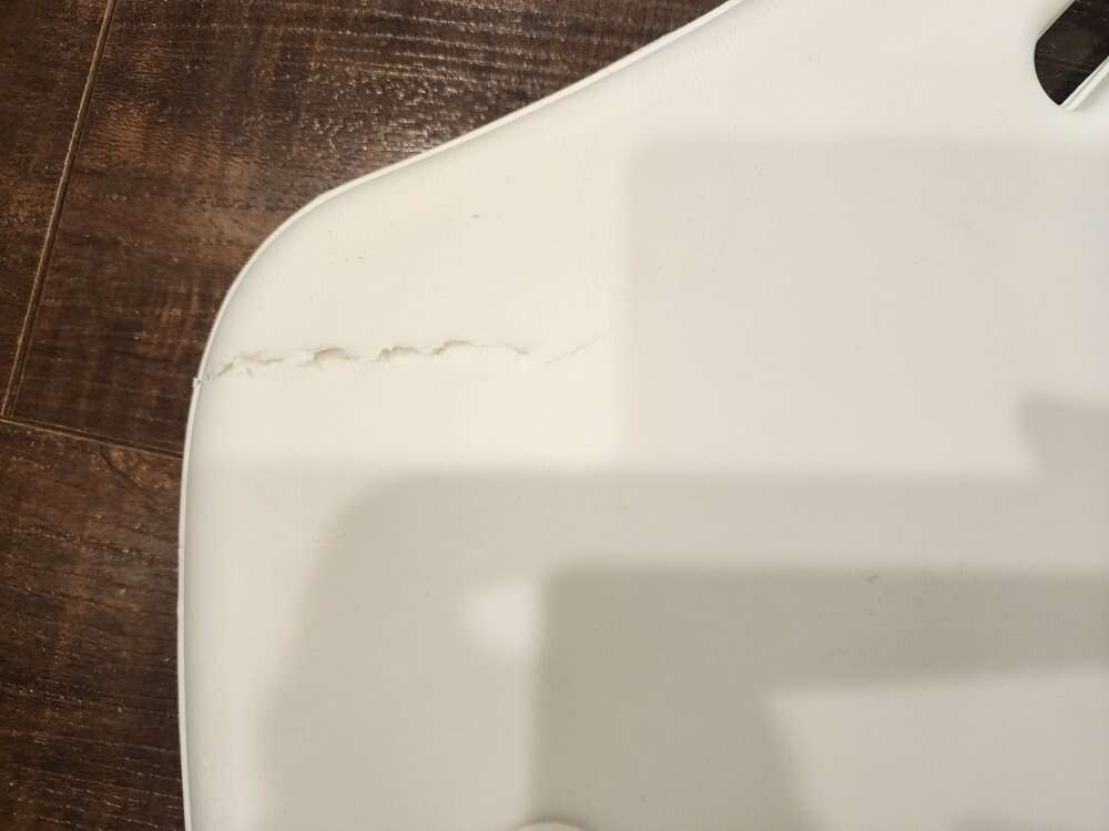This is a PUJ baby foldable baby bath. This can be laid flat to hand on the tub wall or somewhere else for storage. It is magnetized for folding into the shape of the bath and then set into a sink. The bath is a nice soft foam, perfect for the comfort of your baby. It does have one small scratch, as shown in the pictures. We will take cash or Venmo.