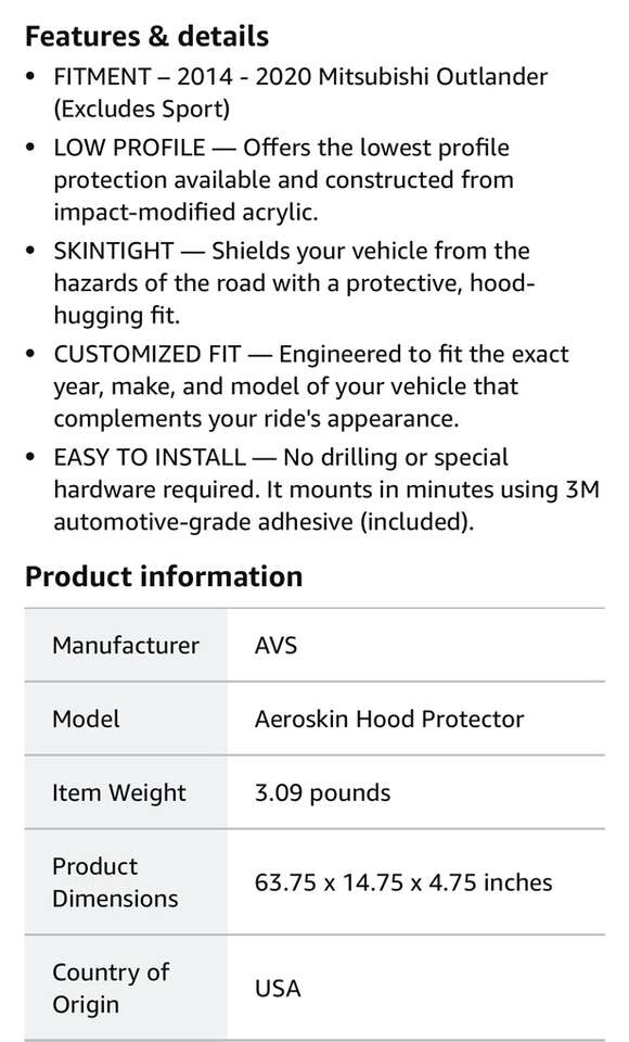 Description- Chrome ABS Aeroskin hood protector for 2014-2020 Mitsubishi Outlander (excludes Sport model). See photos for more product information and specifications.