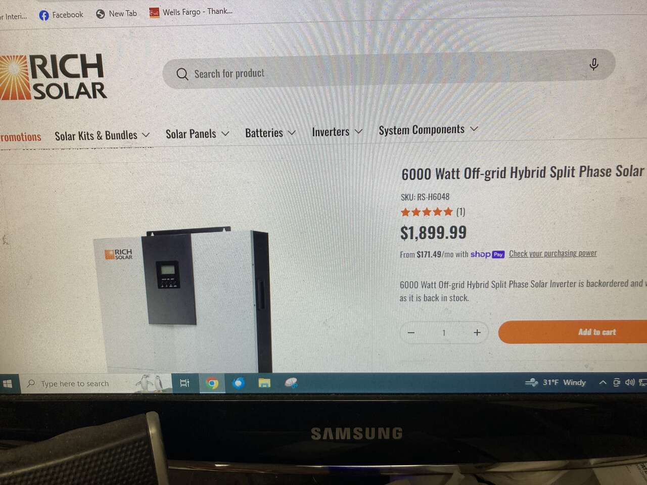 VenmoPure sine wave inverter Selectable output voltage at 120VAC/208VAC/240VAC depending on applications Built-in 2 strings of MPPT solar charge controller Selectable input voltage range for home appliances and personal computers Configurable AC/Solar input priority via LCD setting Compatible to mains voltage or generator power Auto restart while AC is recovering Overload and short-circuit protection Smart battery charger design for optimized battery performance Cold start function Maximum 3 units in parallel operation for single-phase, split-phase and three-phase applications. NEW IN THE BOX (If my ad is up it’s available)