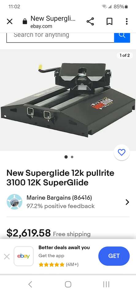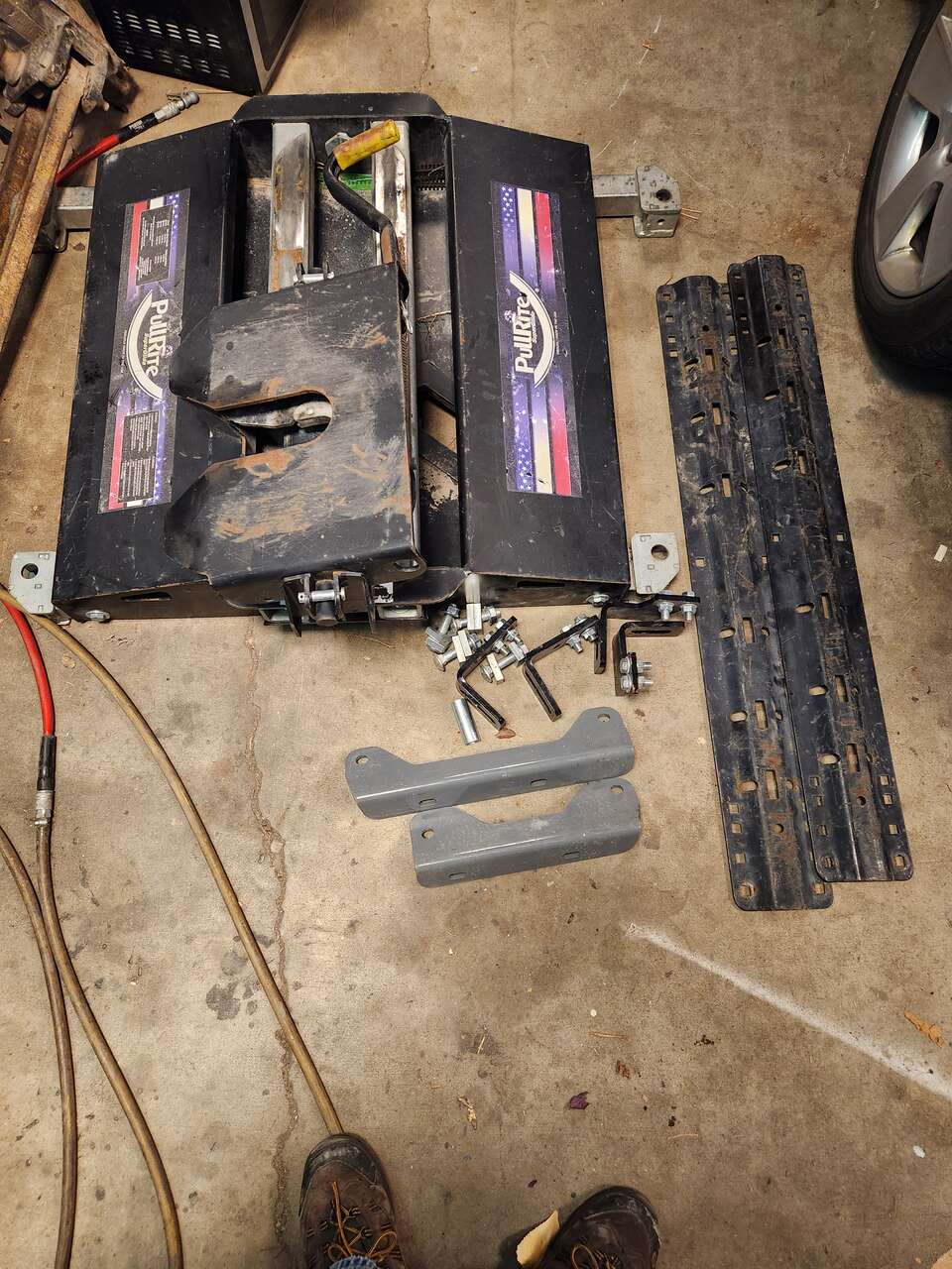 Pullrite super glide 12,000 lb fifth wheel hitch with mounting hardware, comes with the part for the trailer as well, not sure if all the hardware is for this hitch or not, may be missing some hardware, pics off ebay of same hitch without hardware for price comparison