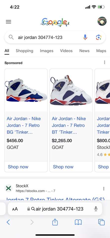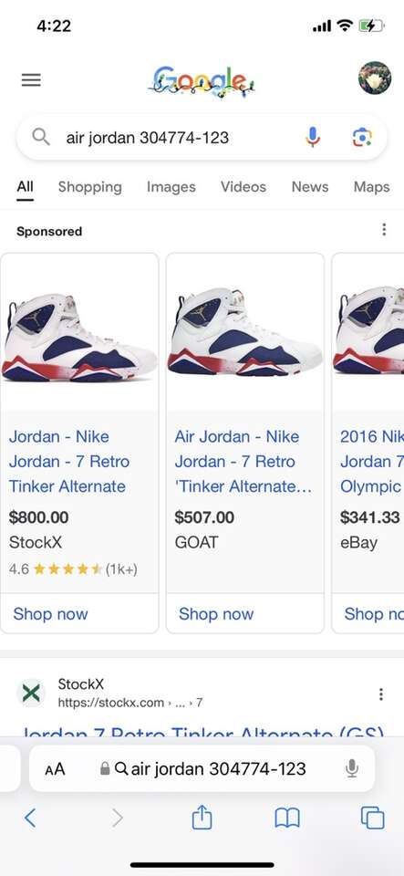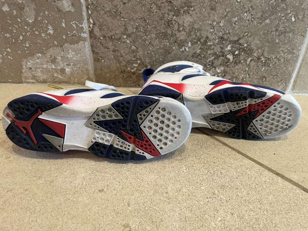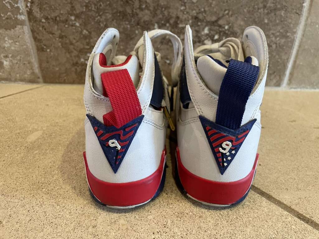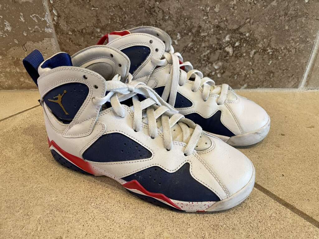 I have a pair of Air Jordan 7 Retro Tinker Alternative shoes size 4Y. The European size is 36 so they’re a boys-men’s 4. They’re in really good condition. The last 2 pictures show some of the prices online for the same shoes. See my other ads for jewelry, artwork, home decor and more.